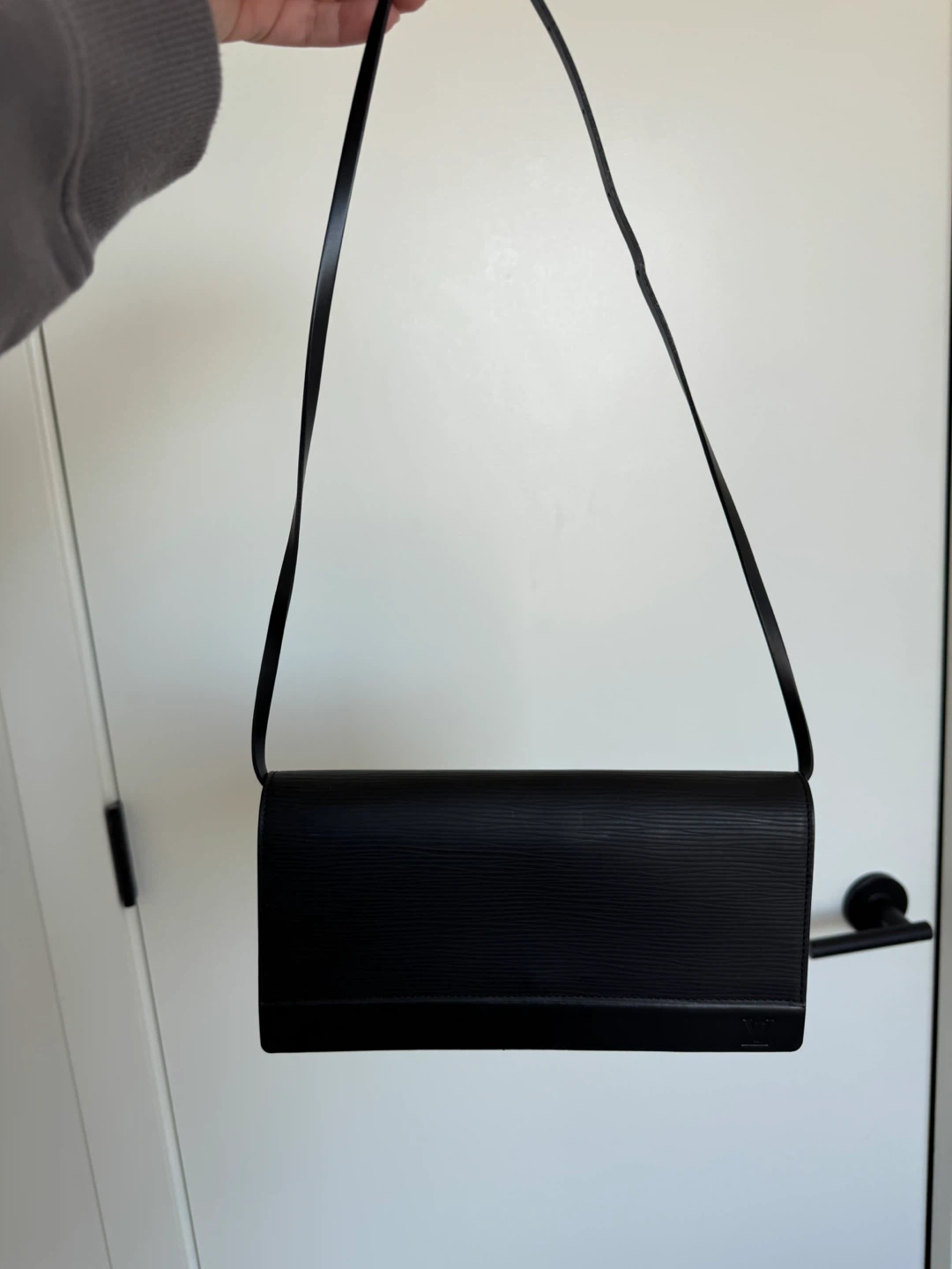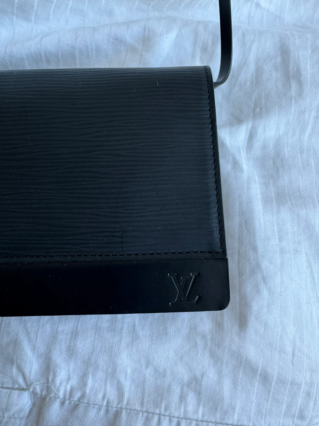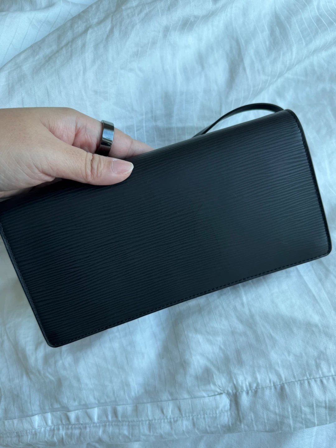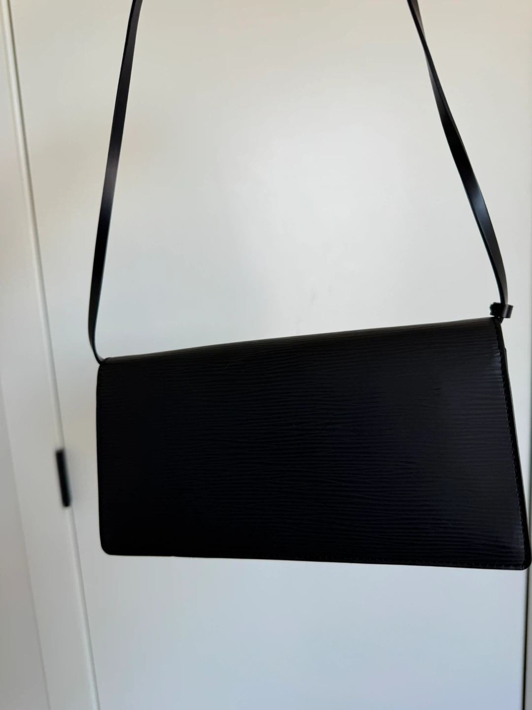 Selling a stylish Louis Vuitton Pochette Bourse bag in black Epi leather! It's a sleek and compact bag, perfect for carrying essentials.