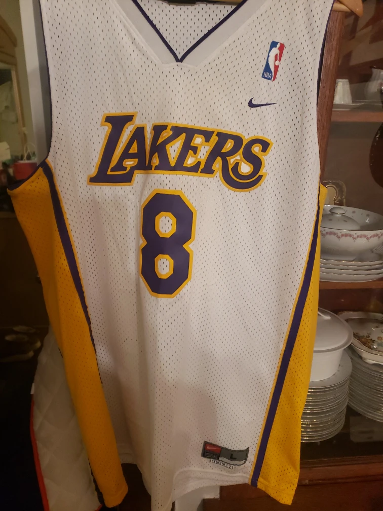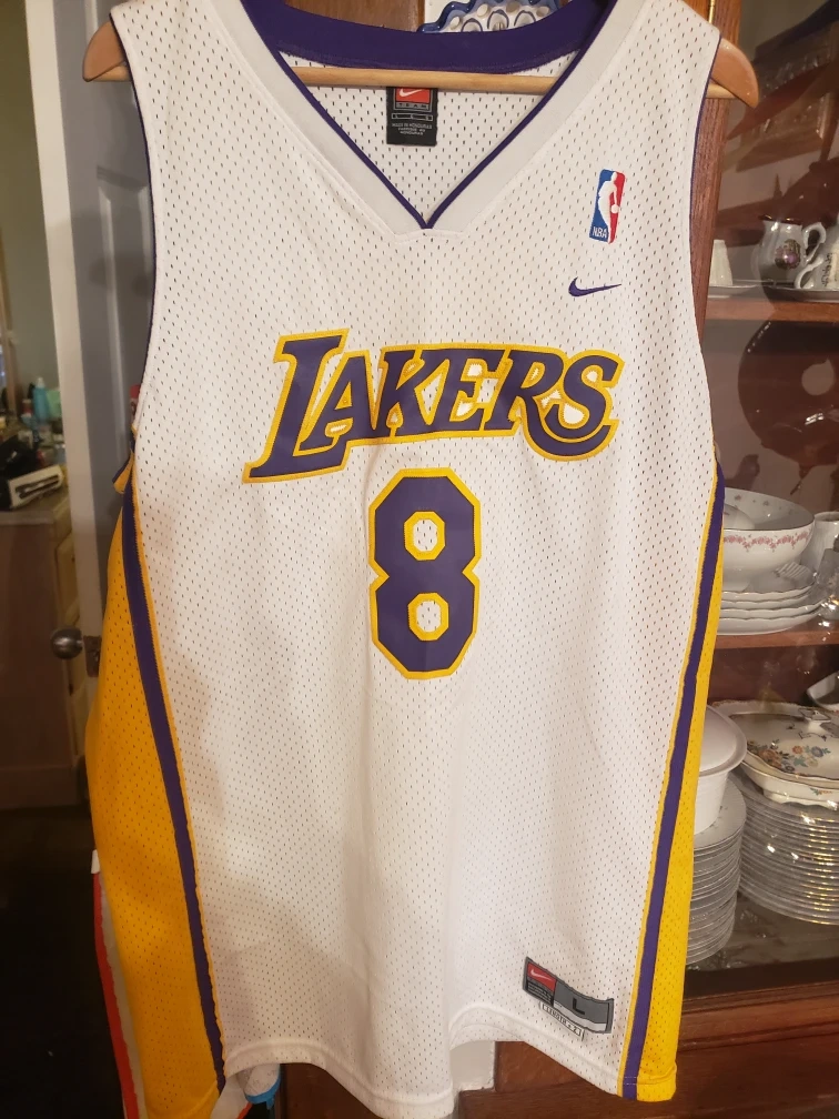 Selling a Nike Lakers jersey featuring Kobe Bryant's iconic #8! It's a size L and in great condition. Perfect for any basketball fan or Lakers supporter