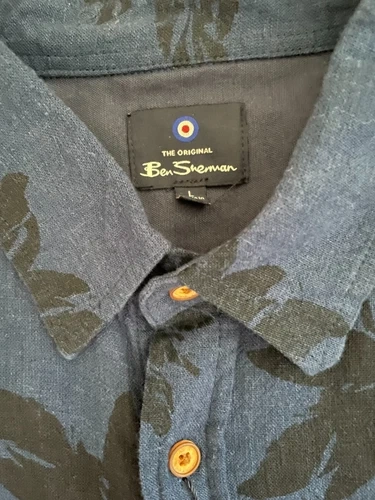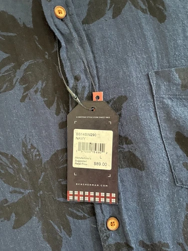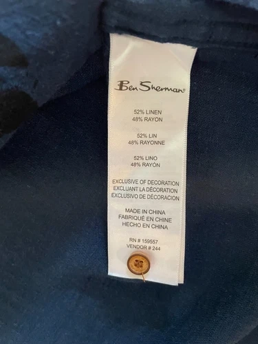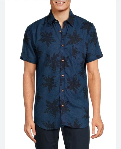 Brand new with tags. MSRP $89 USD. The first four pictures are of the actual product. The rest are for you to see the fit. Button-front styling with a pointed collar. Short sleeves. Pocket at chest. Features a curved hem. Pair with casual pants, denim or dress pants. Material: 52% linen and 48% rayon. Made in China. Excellent condition comes from a pet free smoke free home.