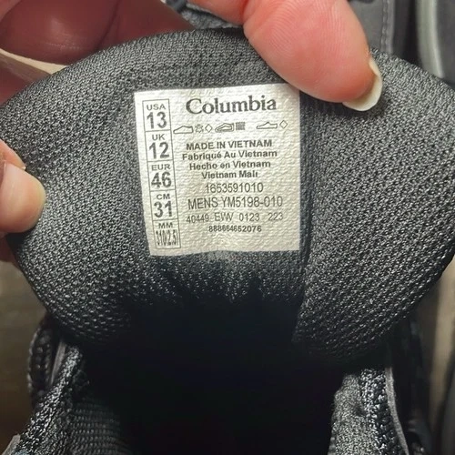 Brand new with box. The first six pictures are of the actual product. Elevate your hiking experience with these Columbia Yoncalla boots for men in size 13. These boots are designed to take you on rugged terrains and keep your feet comfortable and dry with its waterproof feature. The black and gray synthetic upper material adds a stylish touch to your outdoor adventure. The Columbia Yoncalla boots are perfect for any outdoor activity, whether it's hiking, camping, or water sports. Its durable design and waterproof feature make it a reliable choice for any weather conditions. These boots are a must-have for any adventurous men out there. Made in Vietnam. Excellent condition comes from a smoke free pet free home.