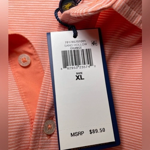Ralph Lauren Polo Golf Orange and White Striped Polo Shirt sz XL