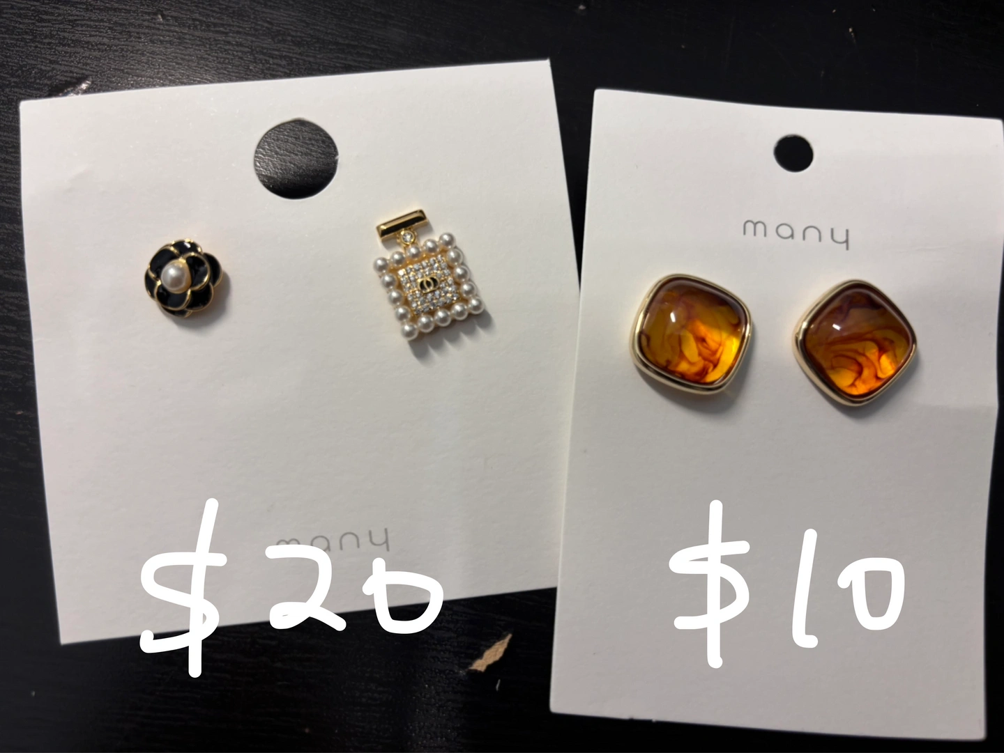 Selling a variety of cute stud earrings! Each pair has its own unique style. Perfect for adding a little something extra to your outfit. Check out the photos to see all the different designs !