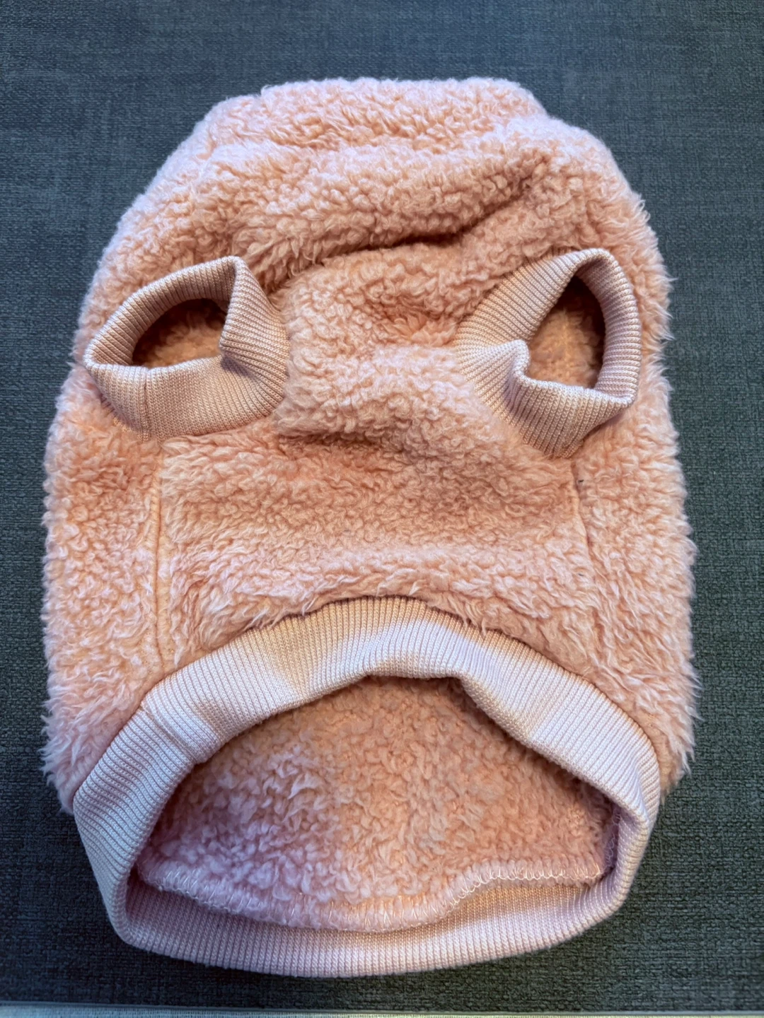 This adorable DADAGOU dog sweater is perfect for keeping your furry friend warm and cozy! It's a soft, fuzzy pink colour and is a size small. It also has a cute DADAGOU patch on the back