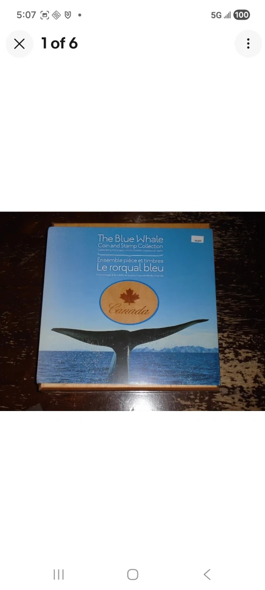 Selling a Royal Canadian Mint 'The Blue Whale' Silver Coin and Stamp Collection. The set includes a $10 coin minted in sterling silver, 2 $10 stamps, along with a limited edition numbered informative booklet with incredible nature photography and illustrations. A unique collector's item! For an extra $10 I can ship this item Canada wide with tracking. Enjoy this this unique and valuable collector set!