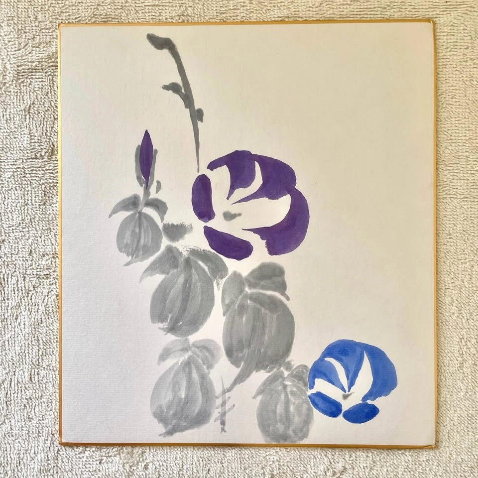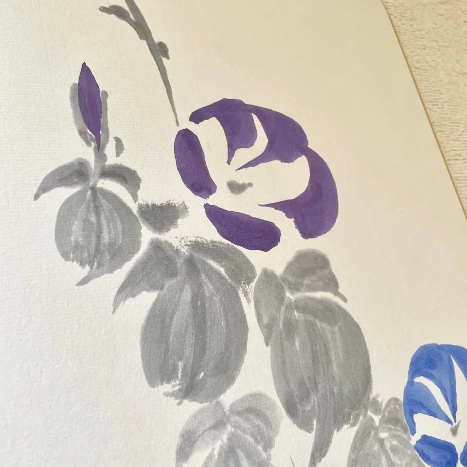 2. “Morning Glory” Graceful purple-blue morning glories in bold ink-wash style — the quintessential Japanese symbol of summer’s fleeting beauty.