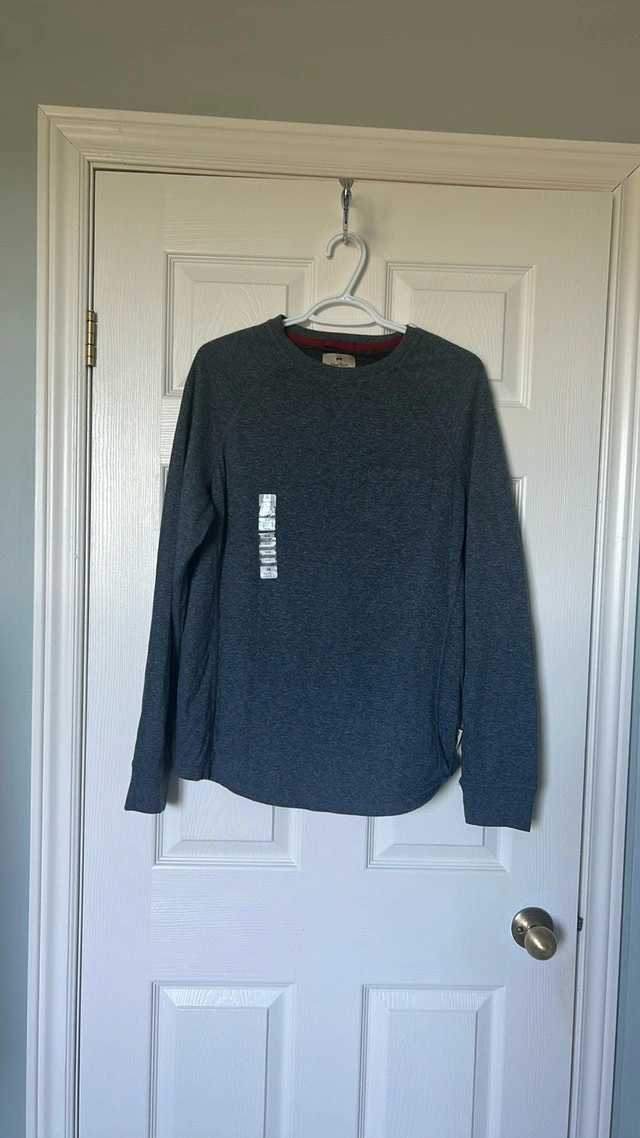 Elevate your casual wardrobe with this new Wind River Heritage long sleeve shirt, crafted from a comfortable 60% cotton and 40% polyester blend in a stylish navy heather. Perfect for layering or wearing on its own. Features: - Brand: Wind River Heritage - Colour: Navy Heather - Material: 60% Cotton, 40% Polyester - Size: M - Condition: New with tags