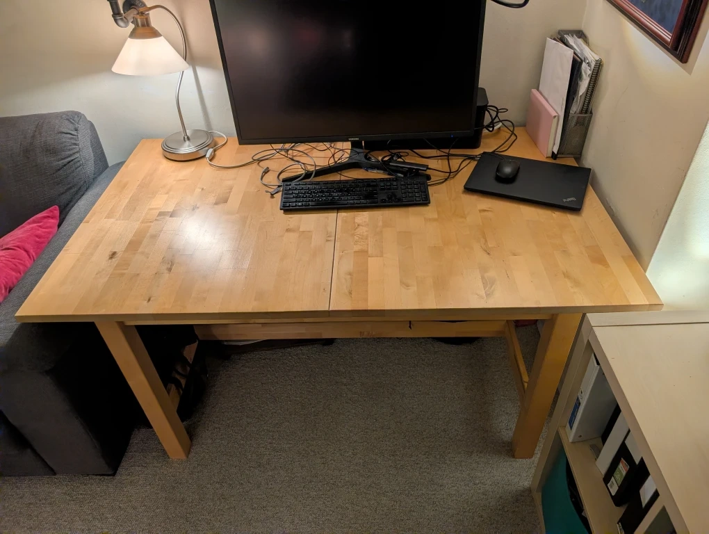 Selling a used IKEA extendable dining table. It's in good condition and perfect for small spaces that need extra table space sometimes. The table is a light wood colour. The IKEA Norden Extendable Table has an overall height of 29.13” (74 cm), adjustable width between 61”-82.7” (155-210 cm), and depth of 35.4” (90 cm).