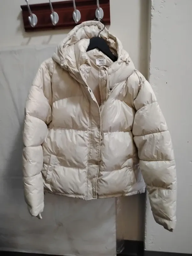 Selling an puffy jacket! It's in great condition and perfect for staying warm during the colder months. The colour is a lovely neutral tone that goes with everything .....Worn twice