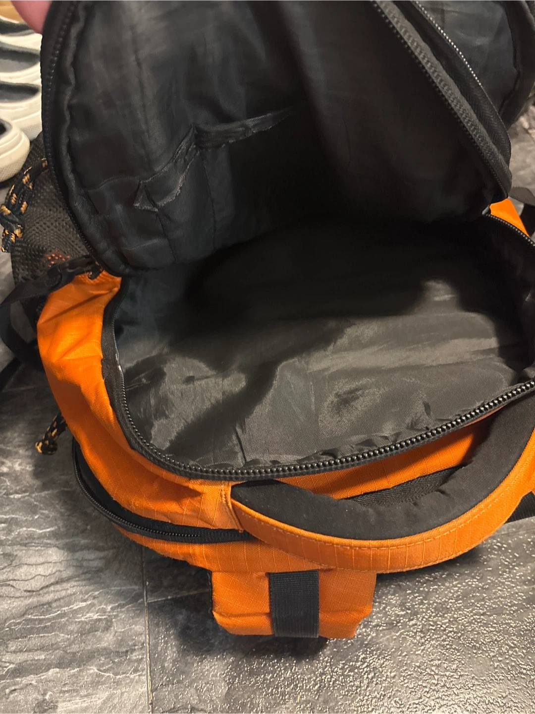 Orange Highland Peak backpack, perfect for hiking or school. It's in great shape and ready for a new adventure