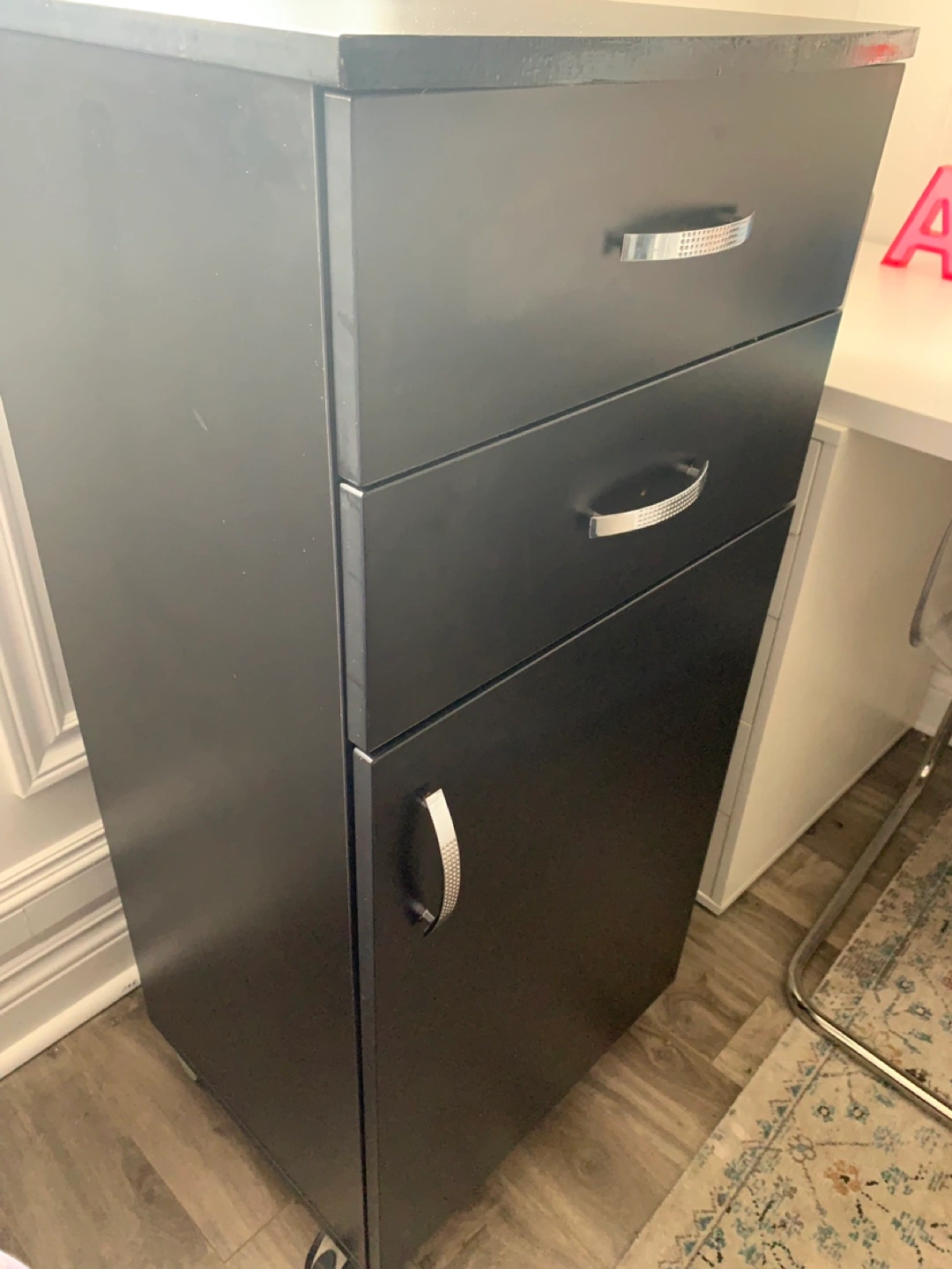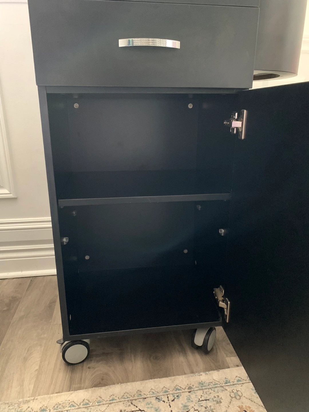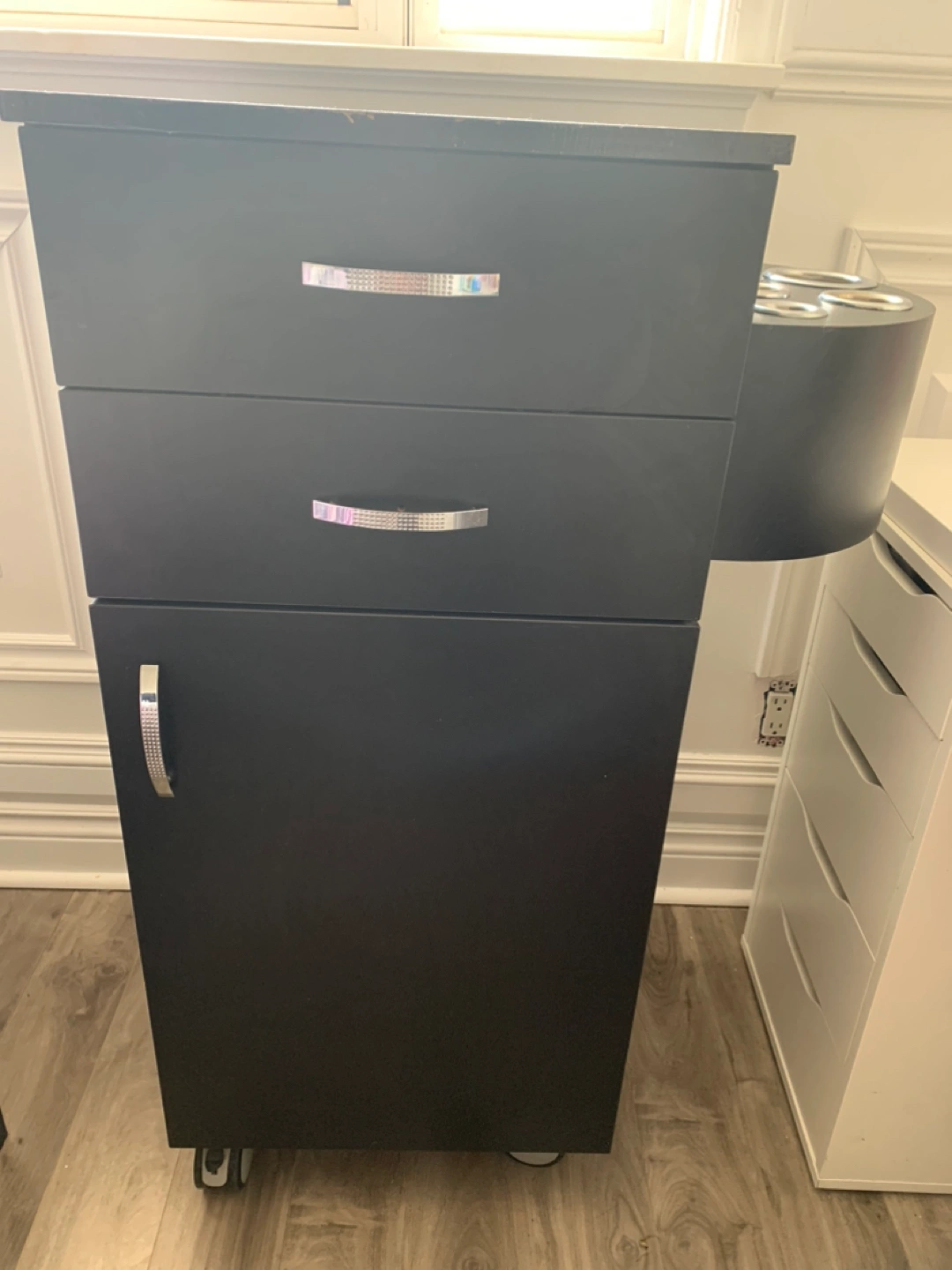 Black salon trolly in good condition.