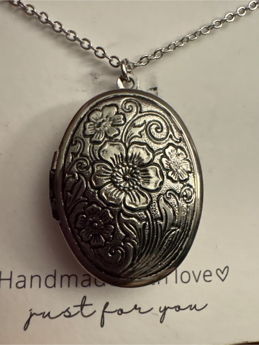 Selling a beautiful silver floral locket necklace from Hoian Craft! It's handmade with love and comes in its original packaging. Perfect for adding a touch of elegance to any outfit