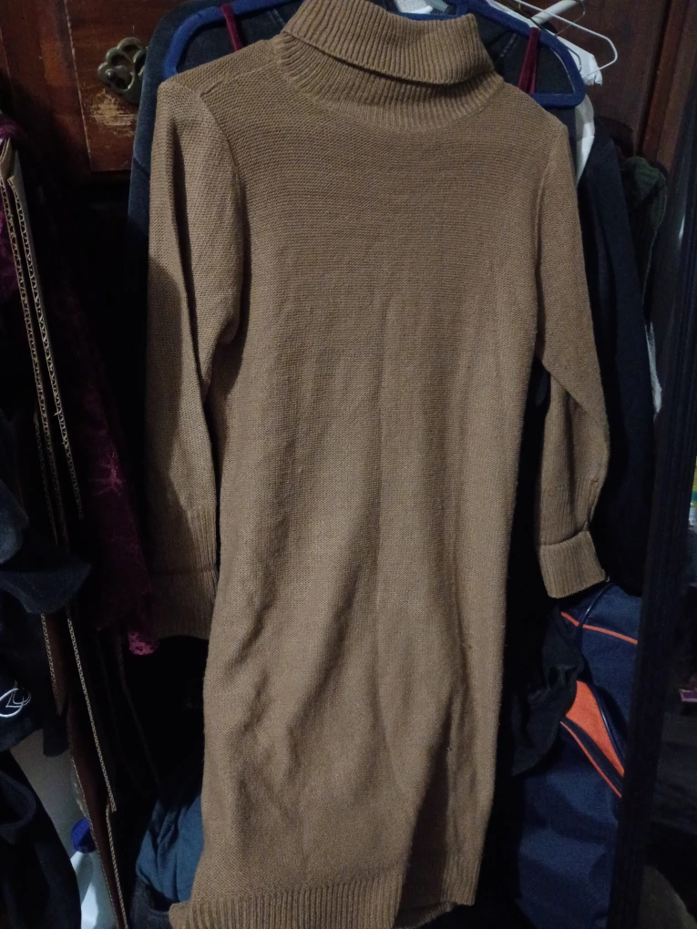 Size medium brown turtleneck midi dress. Fits too largely around the waist as someone that is 4'11 and 120lbs.