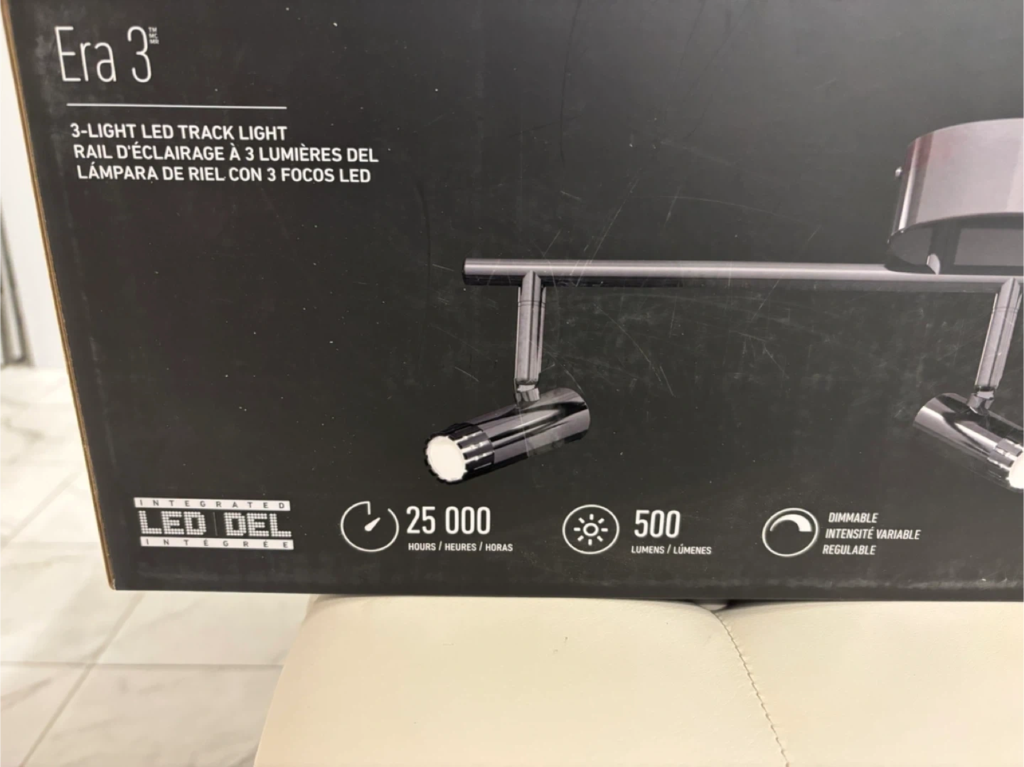 Selling an Artika Era 3-Light LED Track Light that's still brand new in its box! This dimmable light has an integrated LED and provides 500 lumens of brightness. It's rated for 25,000 hours of use. Perfect for adding some modern lighting to any room!