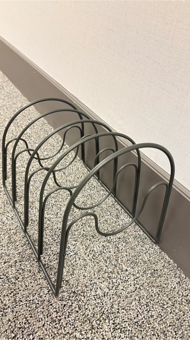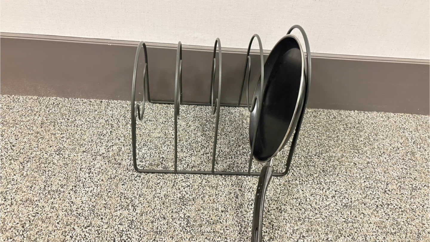 Declutter your kitchen with this handy pan and lid organizer rack! It's perfect for keeping your cookware neat and tidy. This rack helps maximize space and makes finding the right lid a breeze. Great for any kitchen!