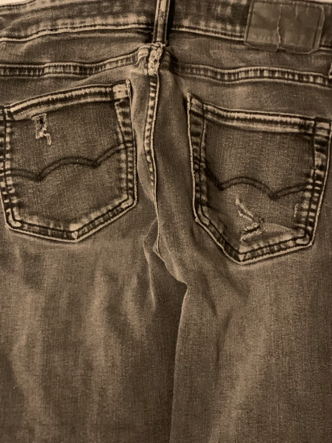 Selling a pair of American Eagle distressed black jeans. They have a cool, worn-in look with the distressed detailing. Great for a casual, edgy style!