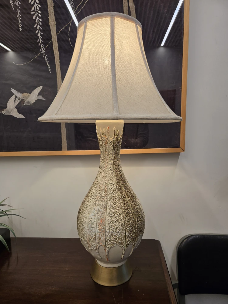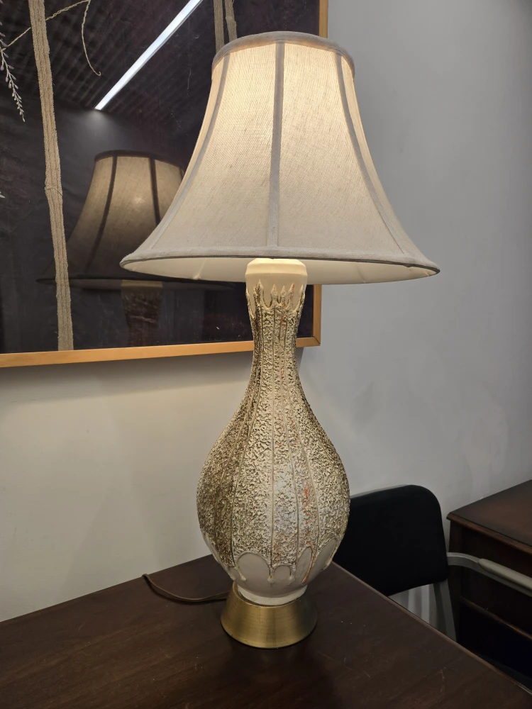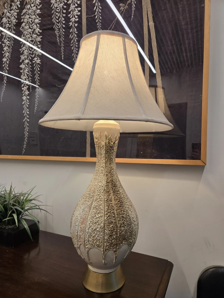 MCM White And Gold Table Lamp With Linen Shade (Delivery Available)