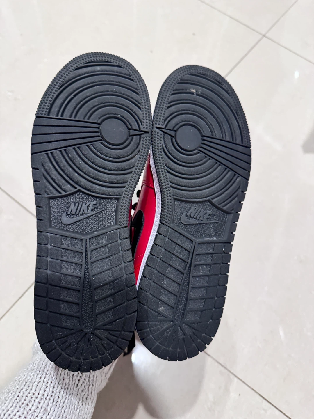 Selling a pair of Nike Air Jordan 1 Low sneakers in red and black. They are a youth size 6Y. Soles are in good condition!