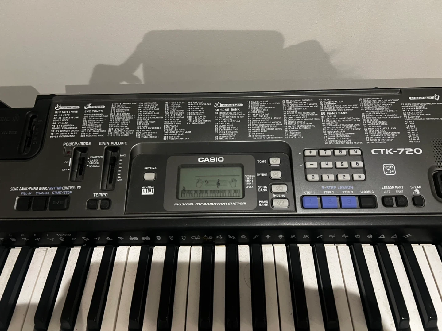 Selling a Casio CTK-720 keyboard. It is in good condition and ready for a new musician! Comes with a stand and stool.