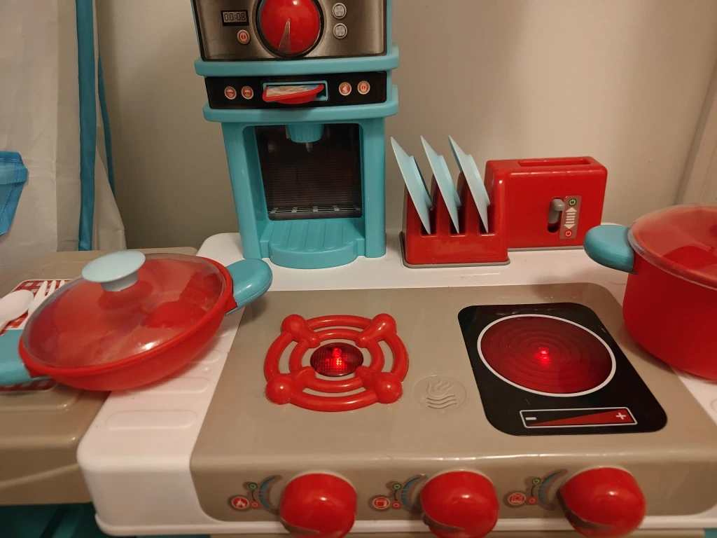 Selling a kitchen set. It's in great condition and ready for a new little chef. Sounds play when your little chef turns the knobs to bring the kitchen to life! And the toast can pop out of the toaster! This fun and interactive playset includes a stove, oven, sink, and plenty of accessories for imaginative play. Perfect for hours of fun!