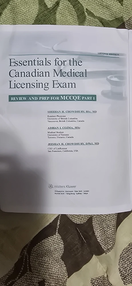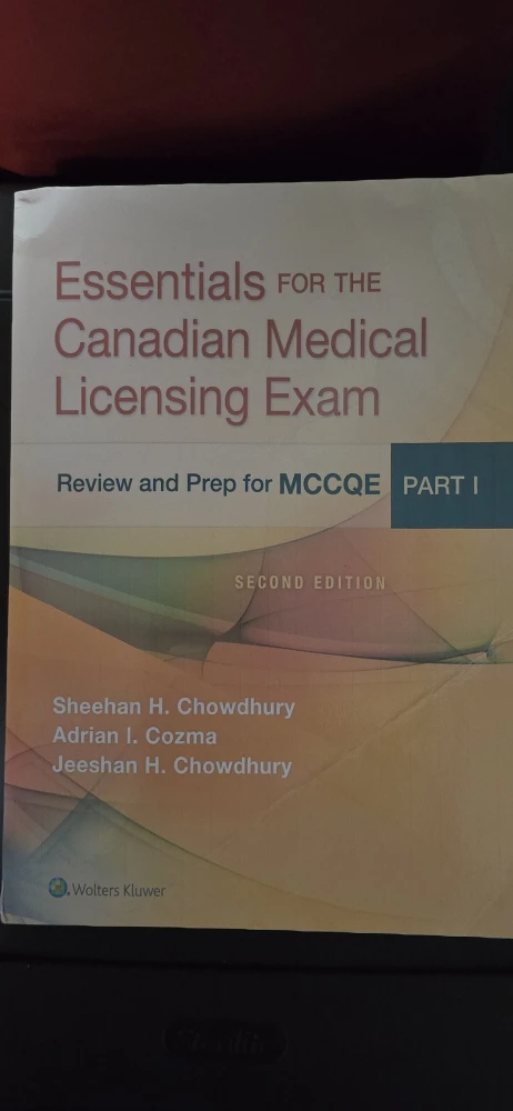 Selling the book 'Essentials for the Canadian Medical Licensing Exam'. It's the second edition and is a review and prep book for MCCQE Part 1. Authors include Sheehan H. Chowdhury, Adrian I. Cozma, and Jeeshan H. Chowdhury