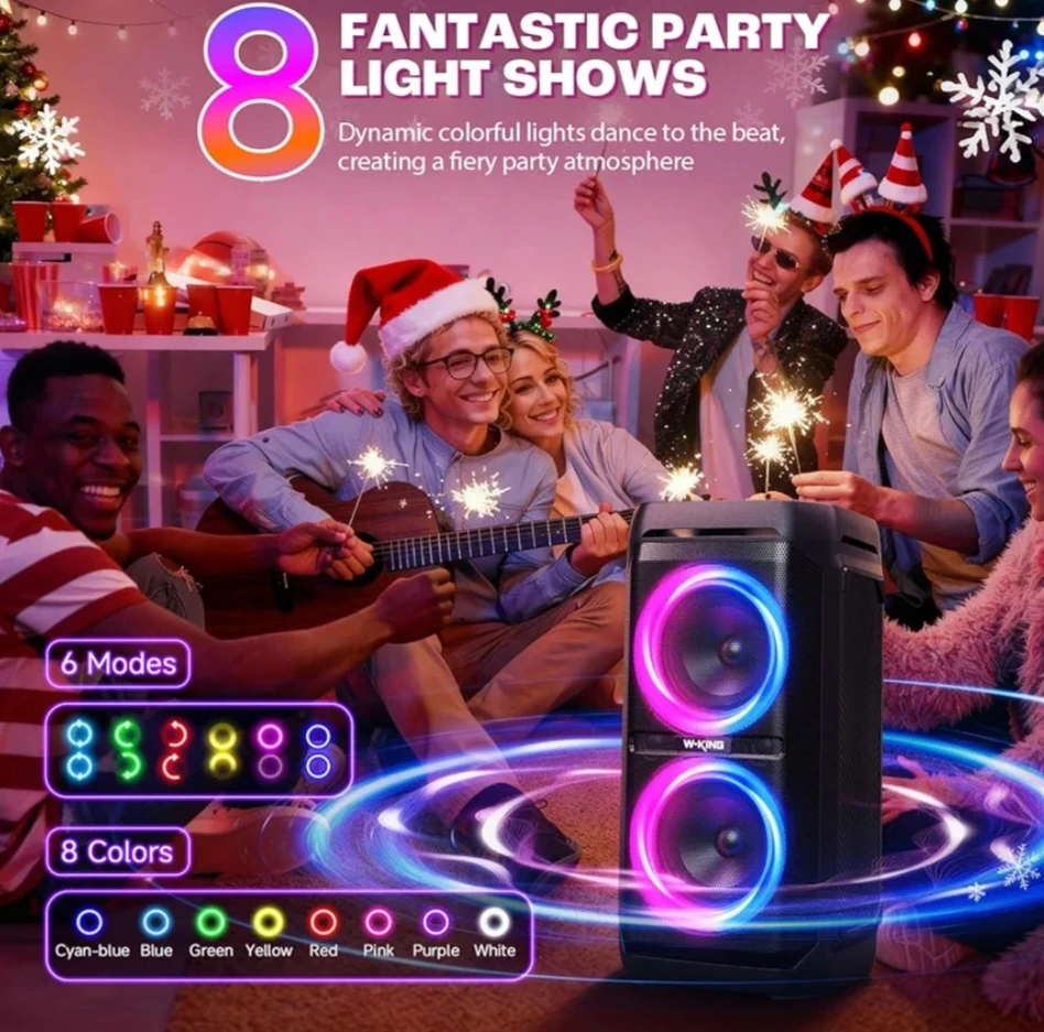 Selling a W-KING portable Bluetooth speaker. It has colourful lights that would be great for parties or just listening to music at home! 240 watts