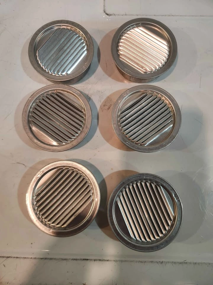 6- 3" aluminum louvered vents, great for top of the coops to let humidity out and fresh air in. Louvered to prevent wind from entering the coop. (New)
