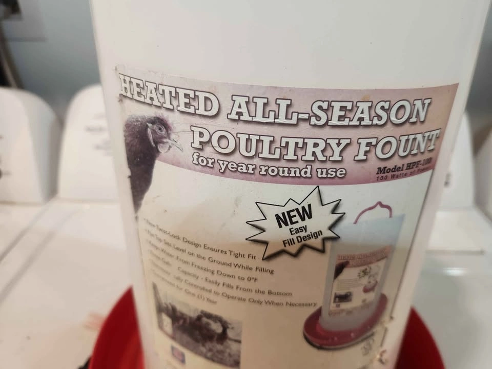 1- All season 3 gallon heated poultry fountain. (Used one season)