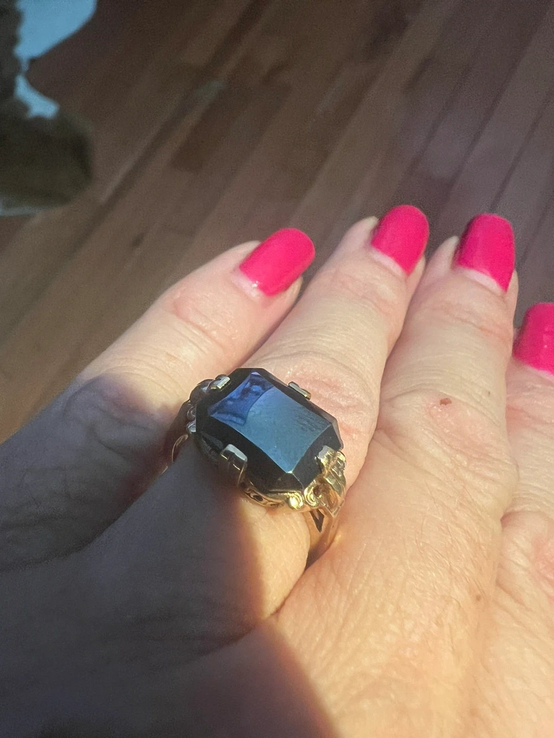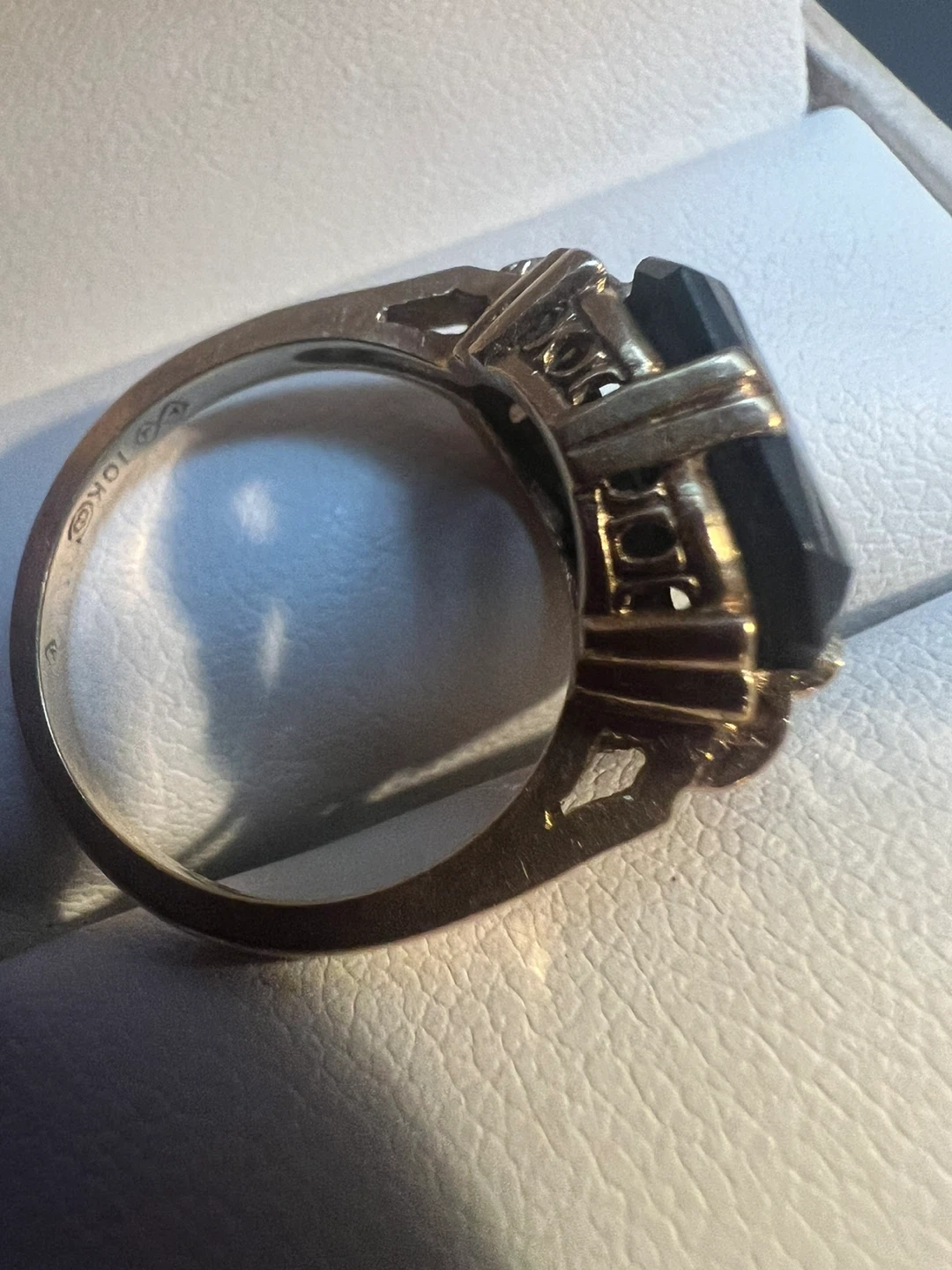 Selling a vintage ring with a black Alaskan marked as 10K gold. It's a unique piece with a classic design. The ring is in good condition and ready to wear!