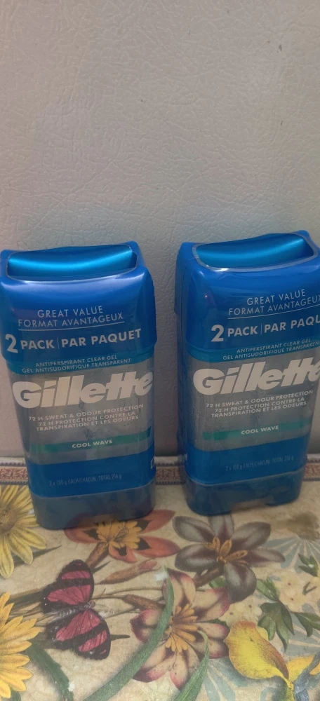 Selling a 2-pack x2 of Gillette Cool Wave antiperspirant clear gel. Each container has 2 x 108g, for a total of 216g. Provides 72-hour sweat and odour protection. Great value!
