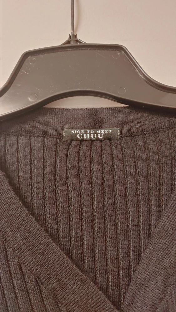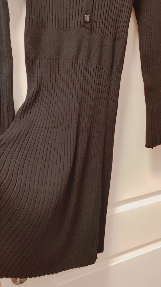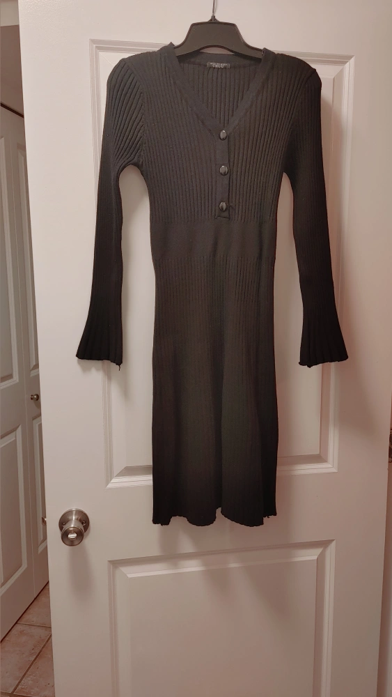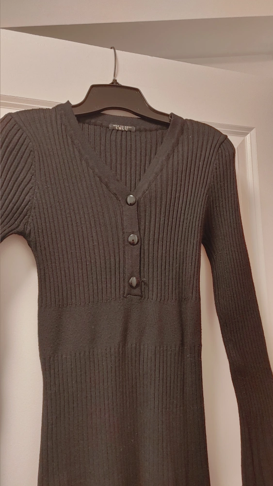 Selling a cute black ribbed dress from Nice to Meet Chuu! It has a V-neck and button detailing. Great for a night out or a casual day.