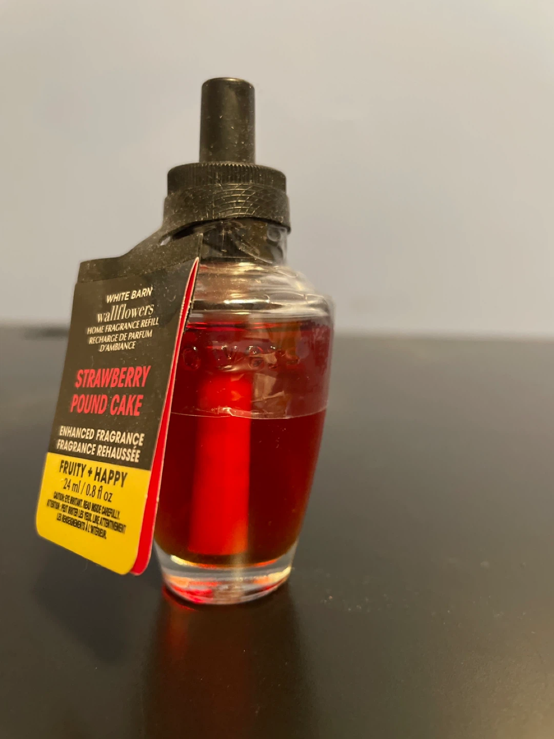 Selling a Bath & Body Works Wallflowers home fragrance refill in the Strawberry Pound Cake scent! It's a fruity and happy enhanced fragrance, with 24 ml / 0.8 fl oz of product