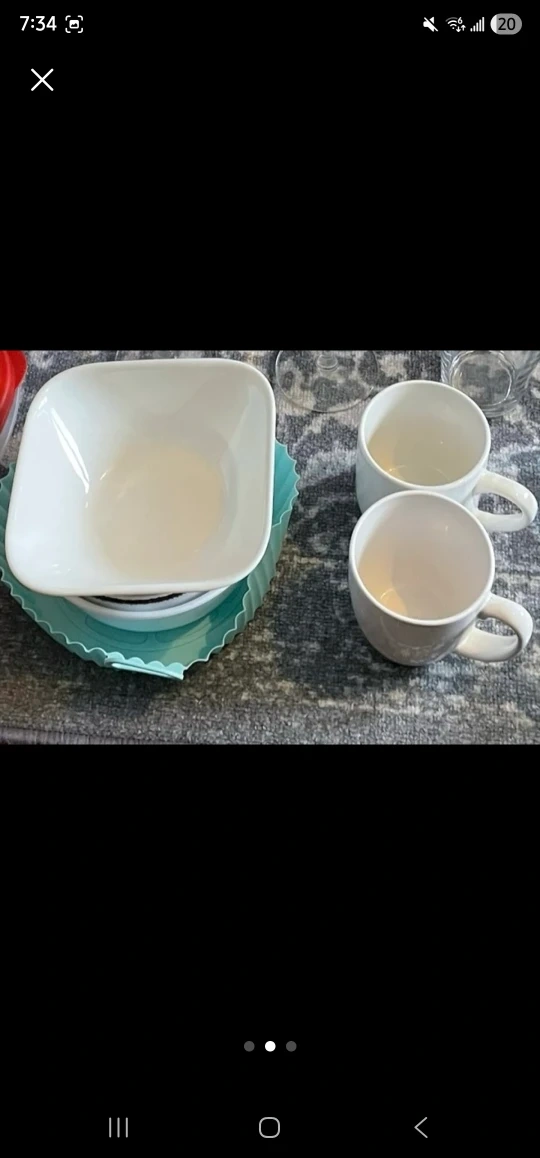 Selling a set of Corelle bowls and cups. 6 bowls & 2 cups. They're in great condition. Includes a mix of round and square bowls. Perfect for everyday use. Washed & stored properly.