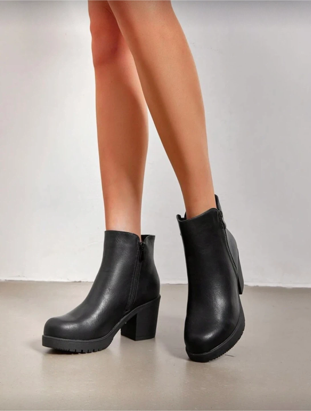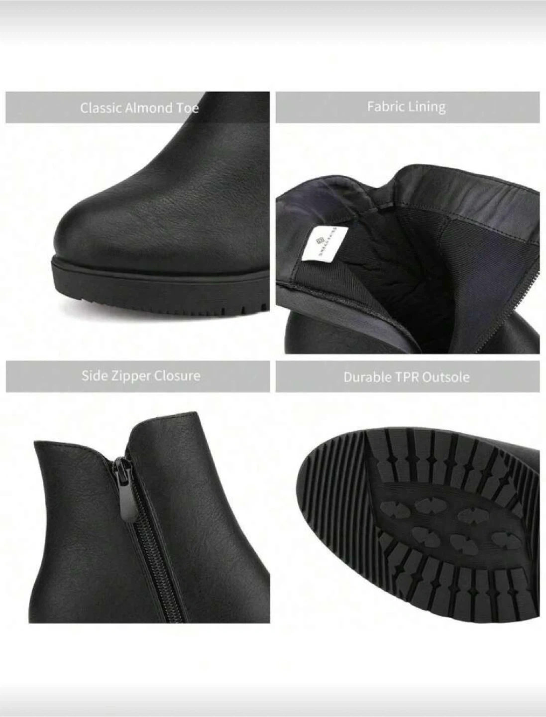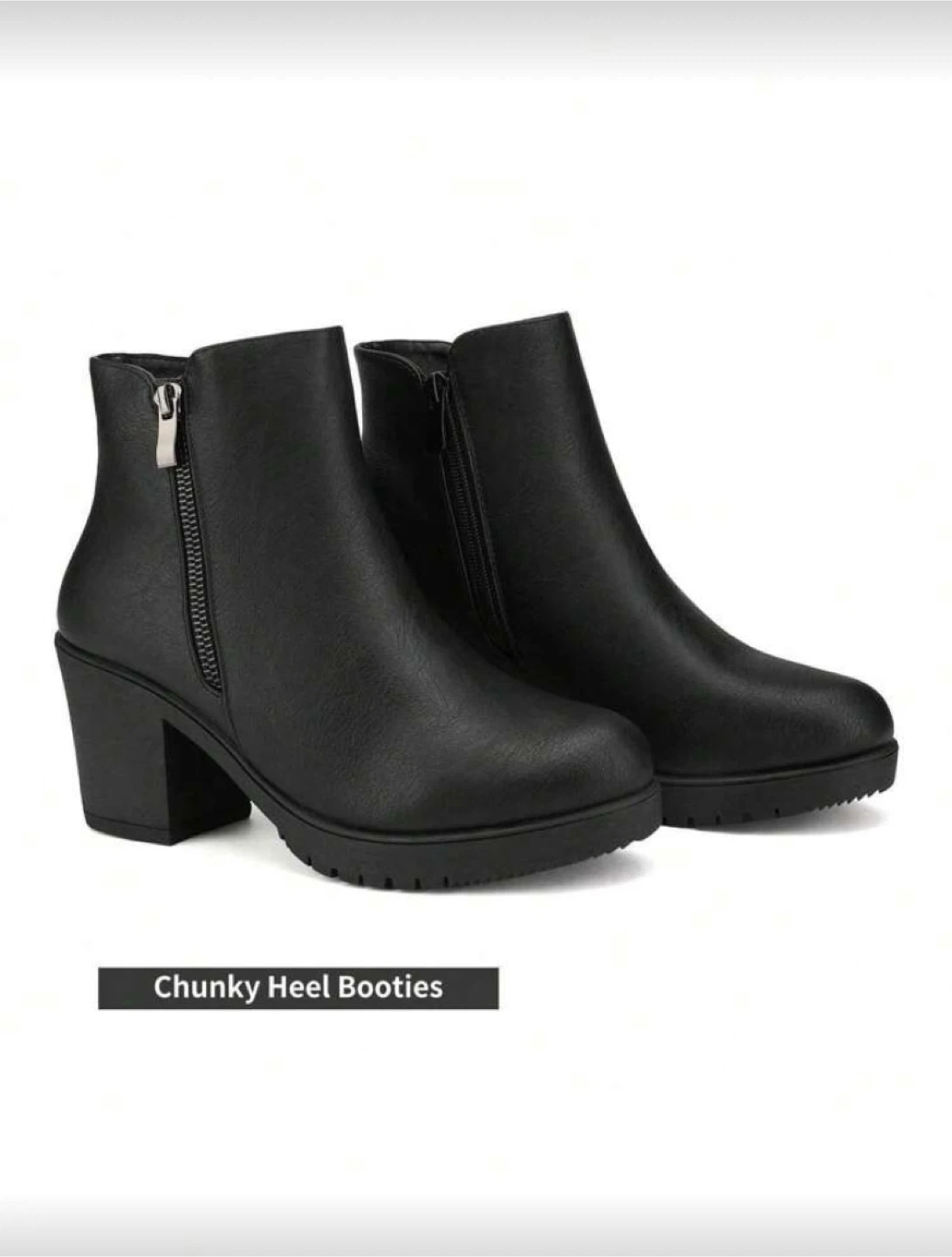 These black chunky heel booties are brand new with box and ready for a new owner! They feature a classic almond toe and a convenient side zipper closure. The durable TPR outsole ensures long-lasting wear, and the fabric lining adds extra comfort. The size is US 11.