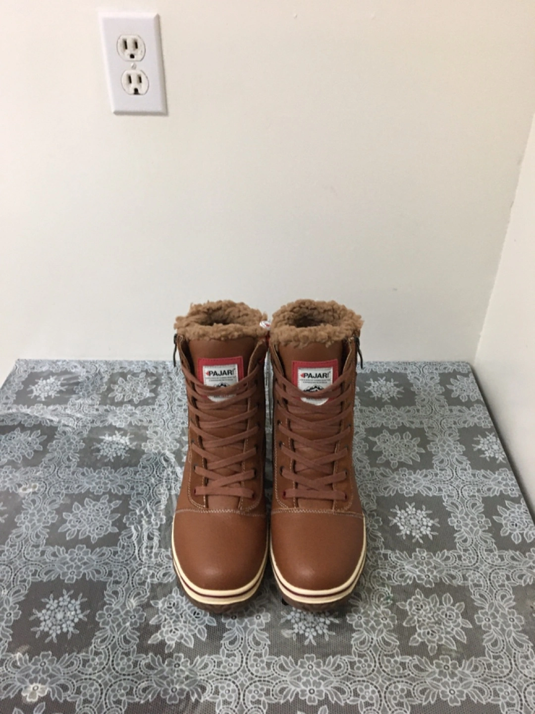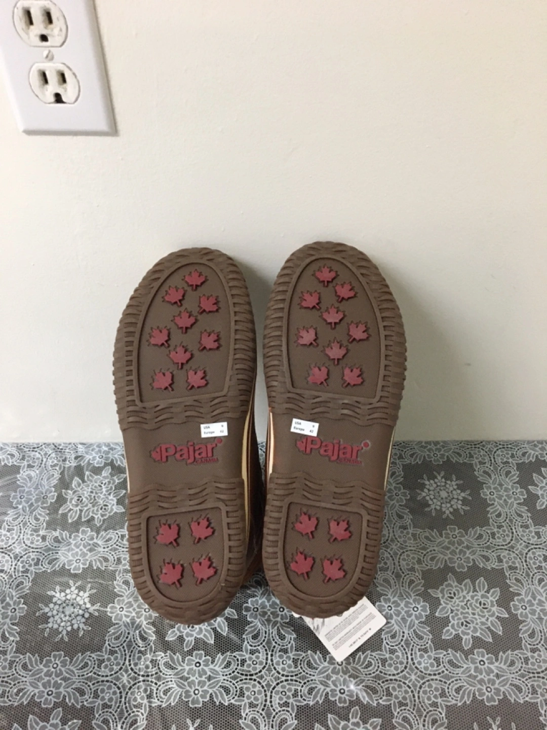Cozy and stylish Pajar winter boots in a lovely brown colour! These boots are perfect for keeping your feet warm and dry during the cold Canadian winters. They feature a comfortable, fur-lined interior and a durable sole with maple leaf designs for extra grip. Size 9.pick up at steeles and Bathurst cash only