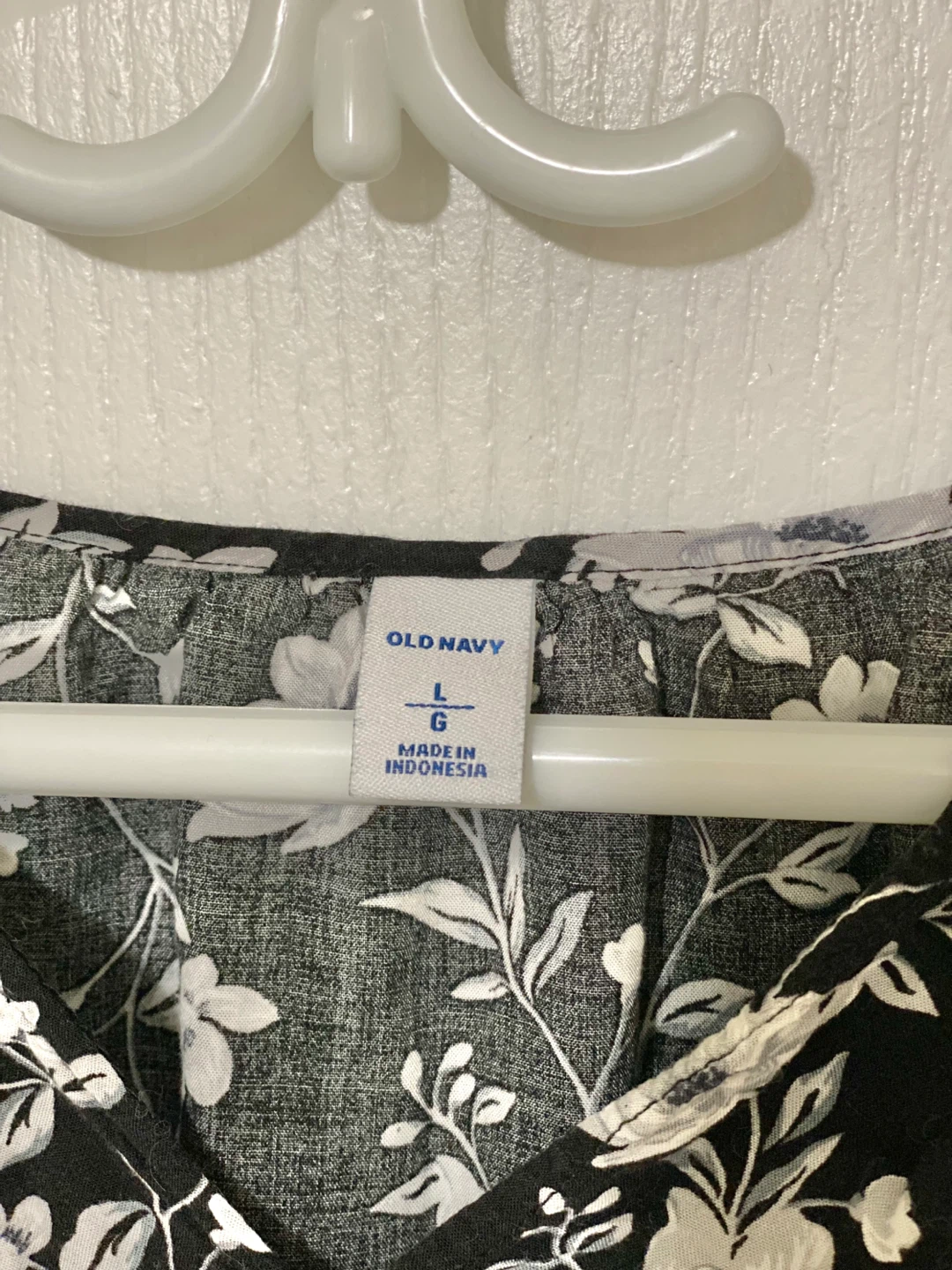 Selling a set of Old Navy floral blouses in size large. There's a red floral print, a white floral print, and a black floral print. All are in great condition!