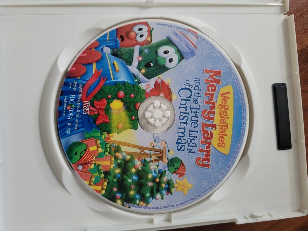 Located in Forest Lawn S.E. Get into the holiday spirit with this VeggieTales Merry Larry and the True Light of Christmas DVD, a delightful addition to any family's collection of Christmas stories. This DVD is in used condition, ready to bring joy to a new home. Specifications: * Format: DVD * Movie: Merry Larry and the True Light of Christmas * Bonus: Includes 25 Favorite Christmas Songs! Estimated Value: Based on recent sales of similar DVDs, a fair price for this item ranges between $5 and $15. Given its good condition, I've priced it competitively. Remember, if you're seeing this ad, the DVD is still available! Don't miss the chance to add some veggie-filled cheer to your Christmas season! $ 5 I have many more items for sale see my other ads. I can do deals on multiple purchases.