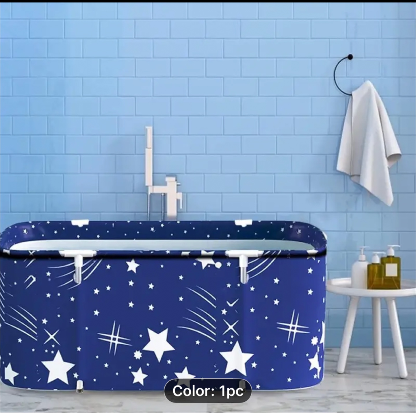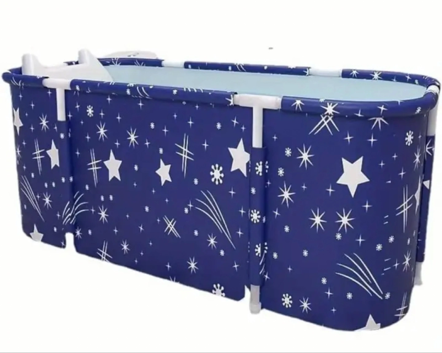 This is a folding portable bathtub with a cute star pattern! It's perfect for small spaces and easy to store. Enjoy a hot or cold soak anytime!
