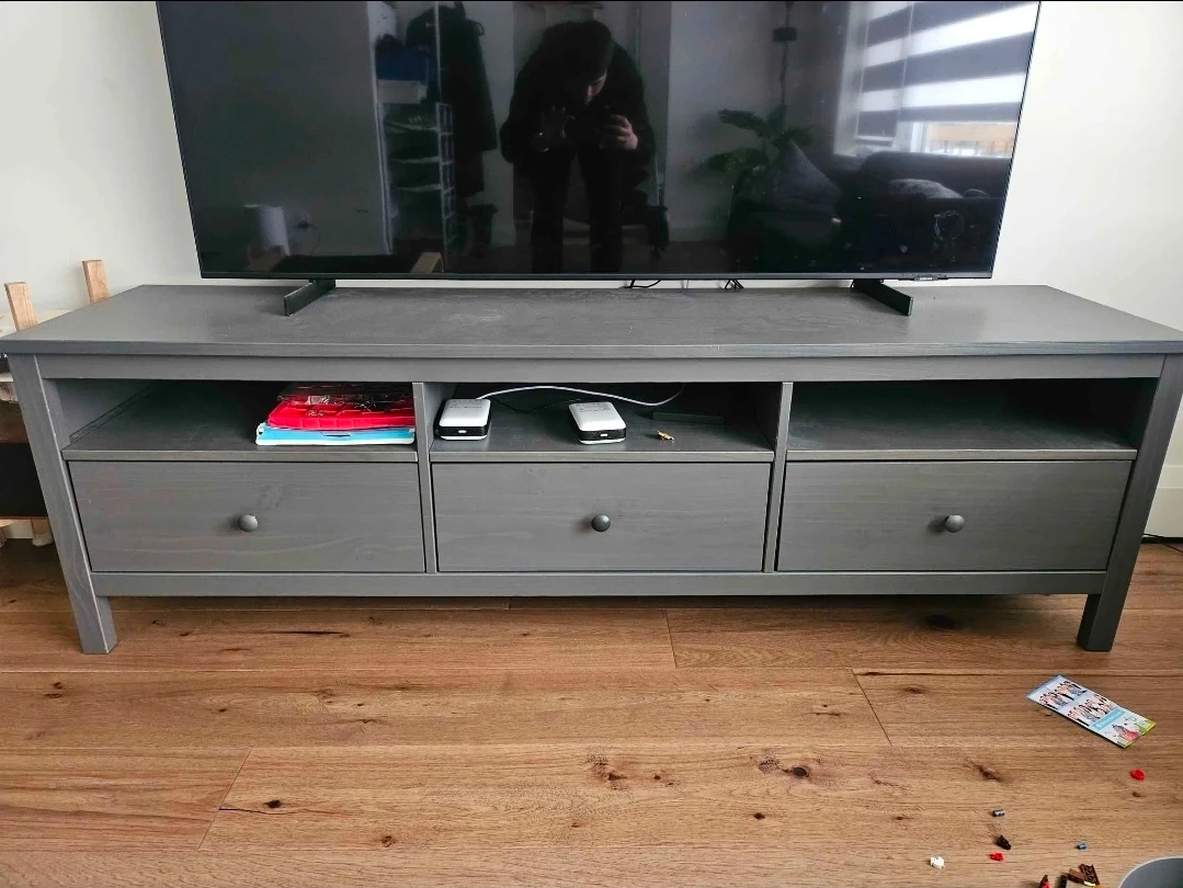 Selling an IKEA Hemnes TV bench in dark gray stained finish. It's in good condition and ready for your living room! Dimensions are 183x47 cm (72x18 1/2 "). Retails for $349