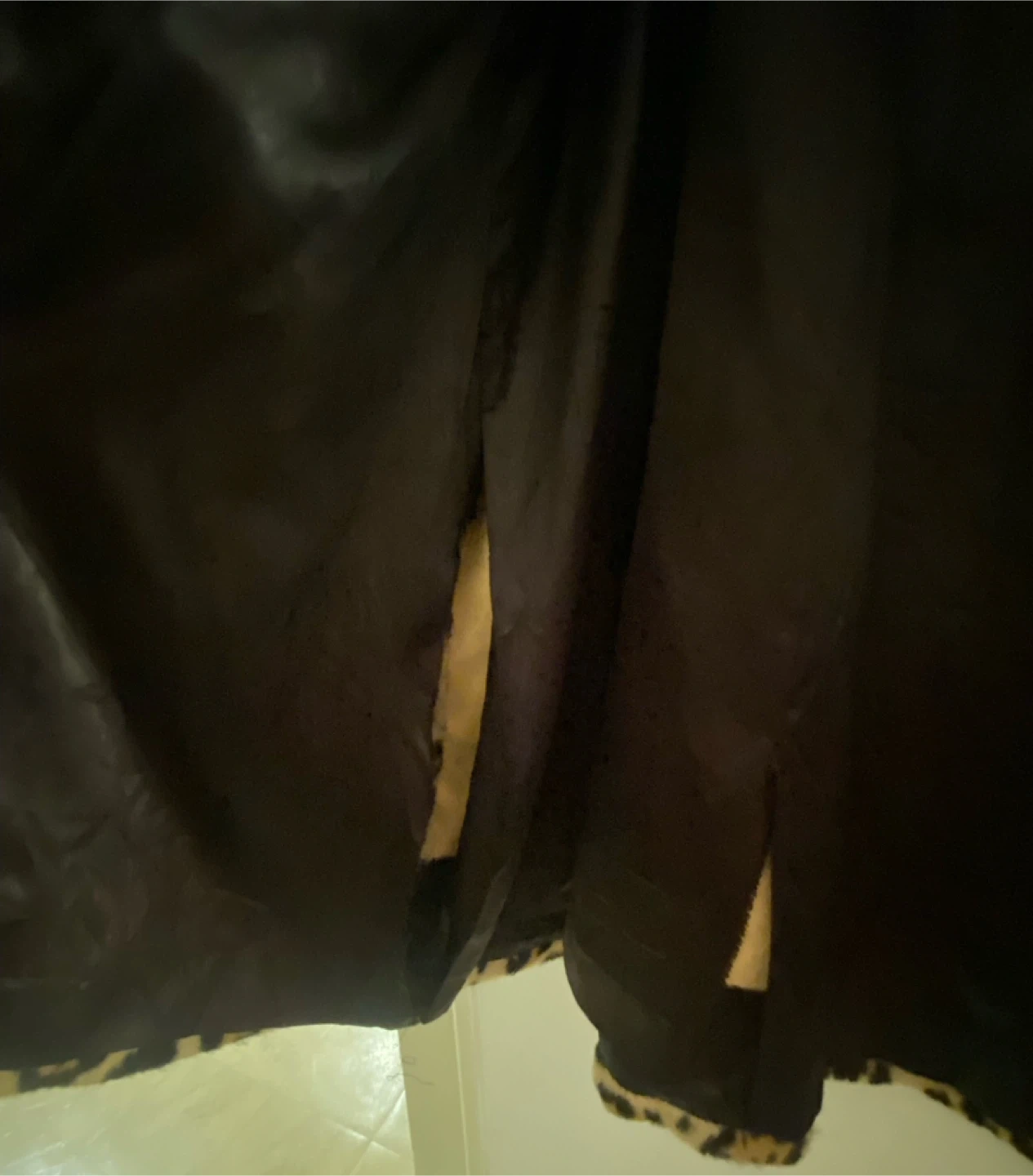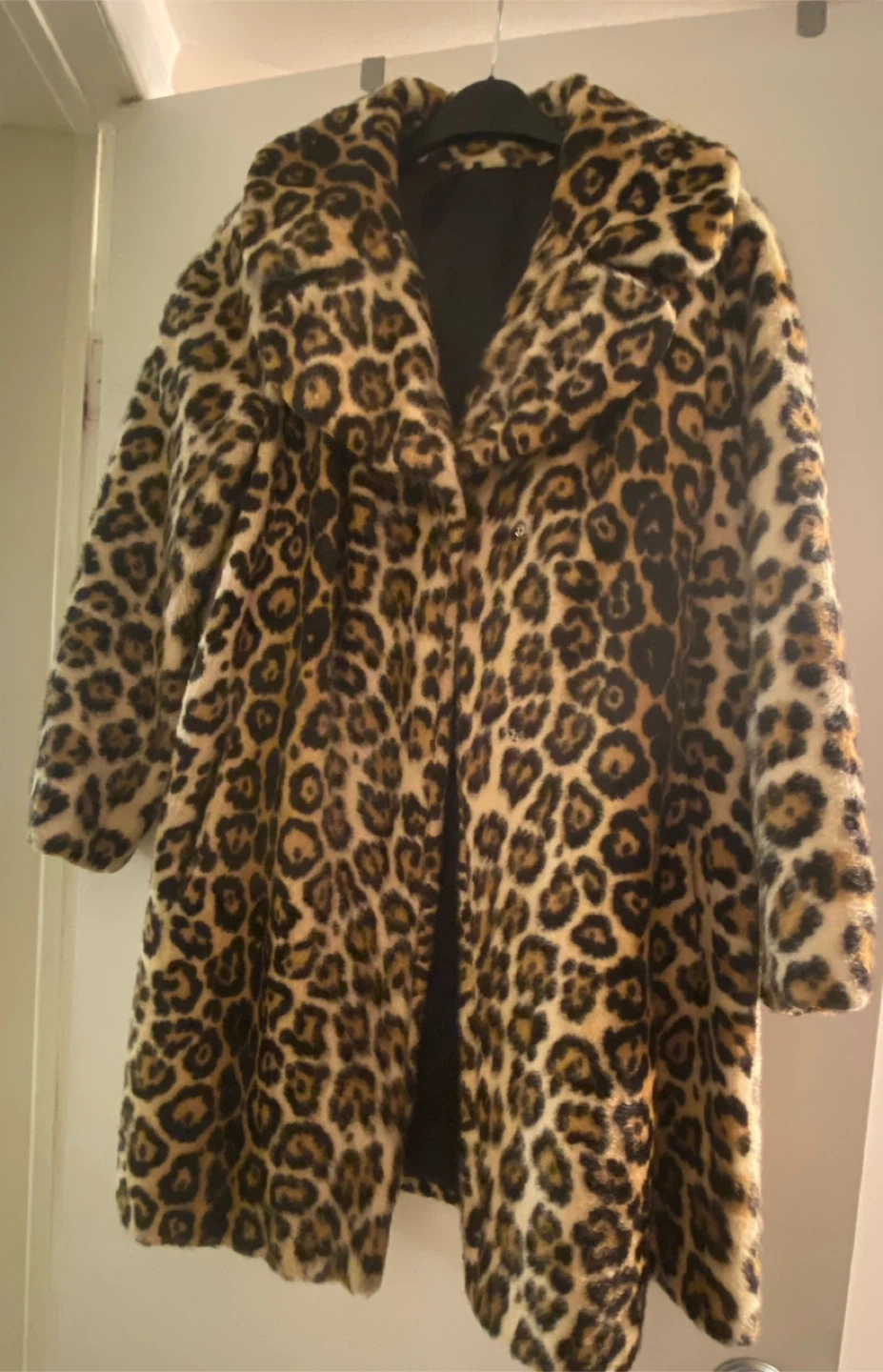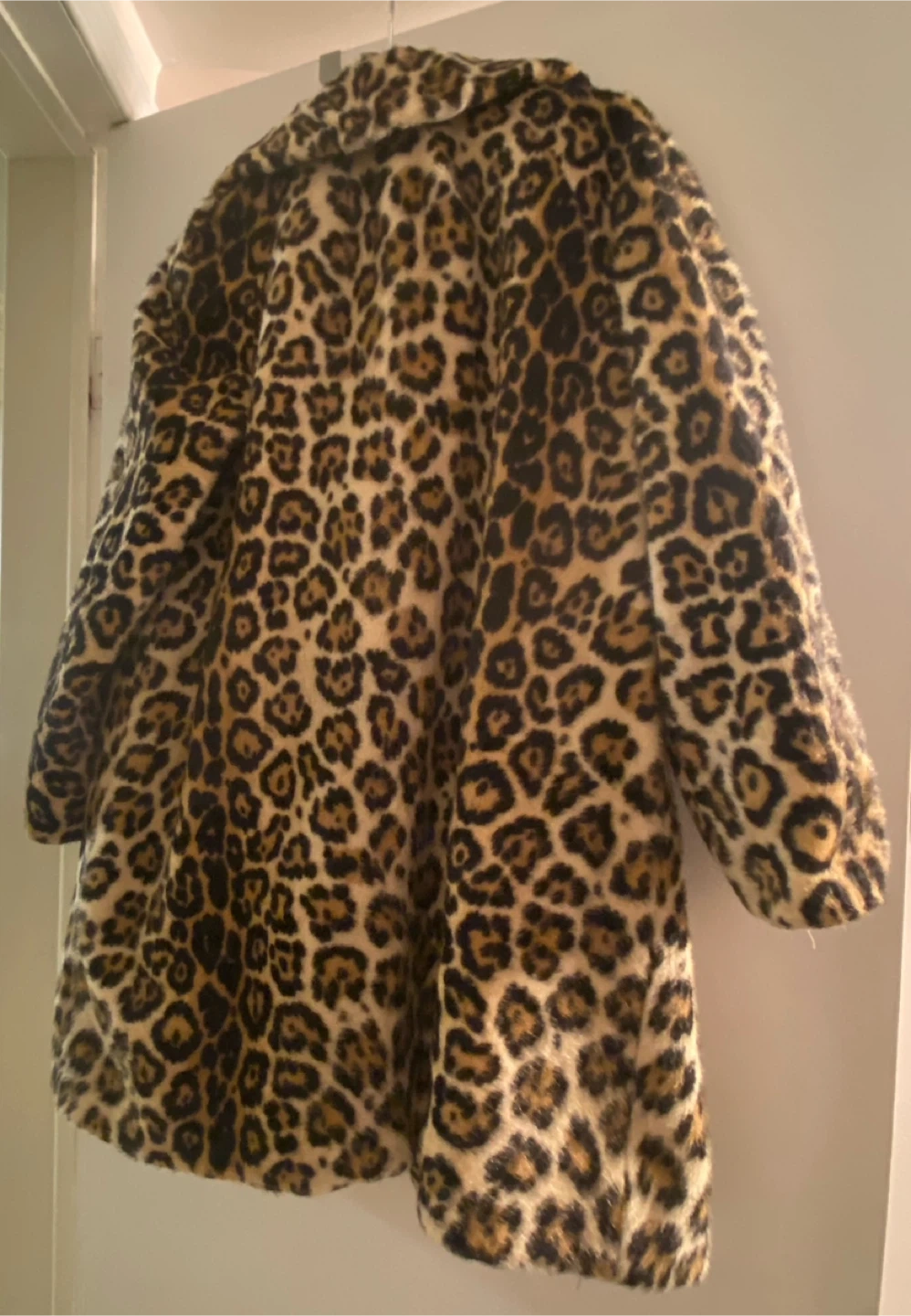 Leopard print coat, from the 80s, some rips i n he lining that can easily be stitched, but otherwise good condition for its age. Fits a size small, no tags.