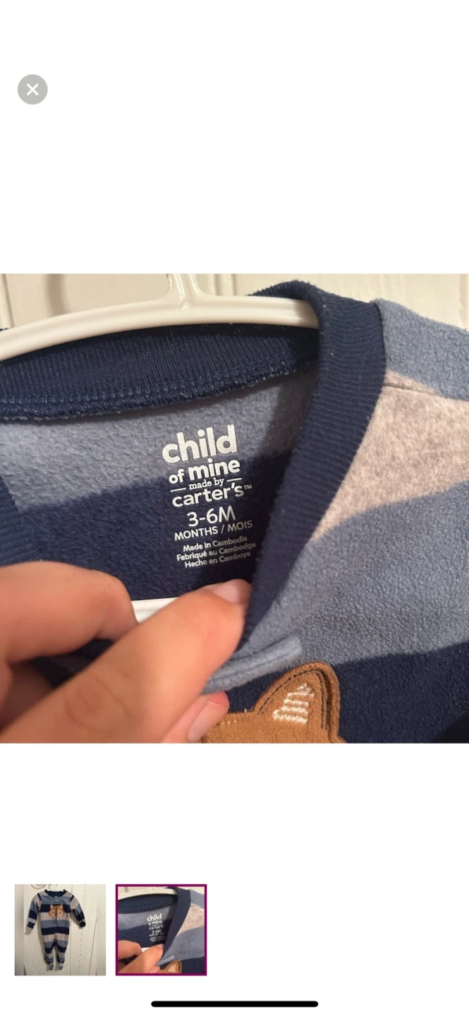 Carters brand. Fleece zip up sleeper. Blue striped fox print. Size 3/6m. Brand new condition