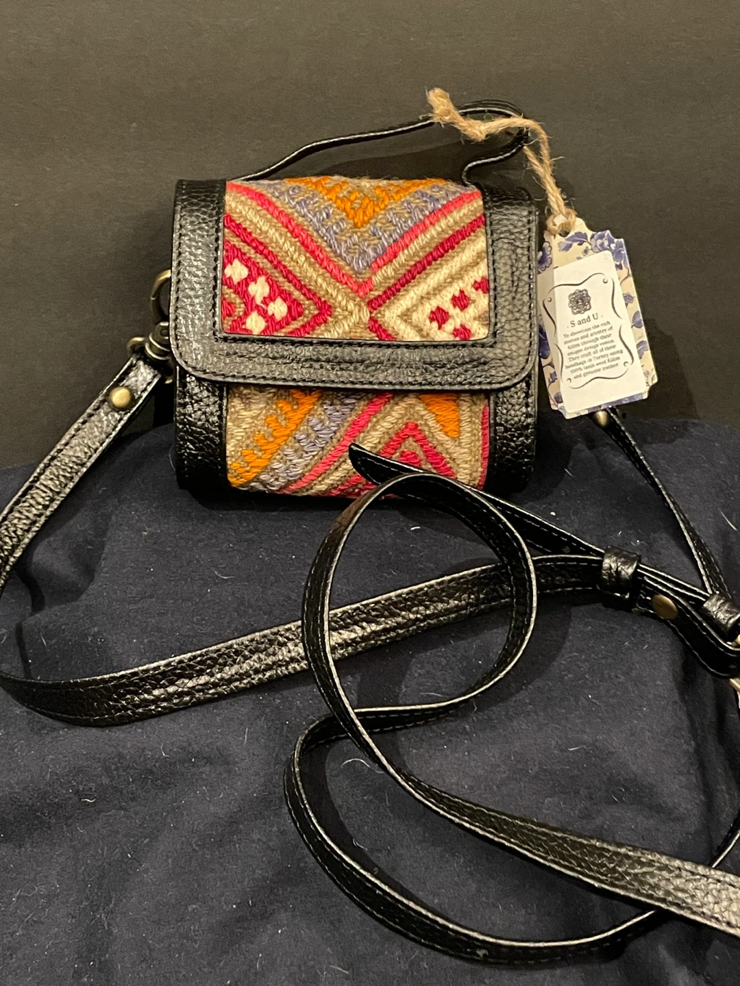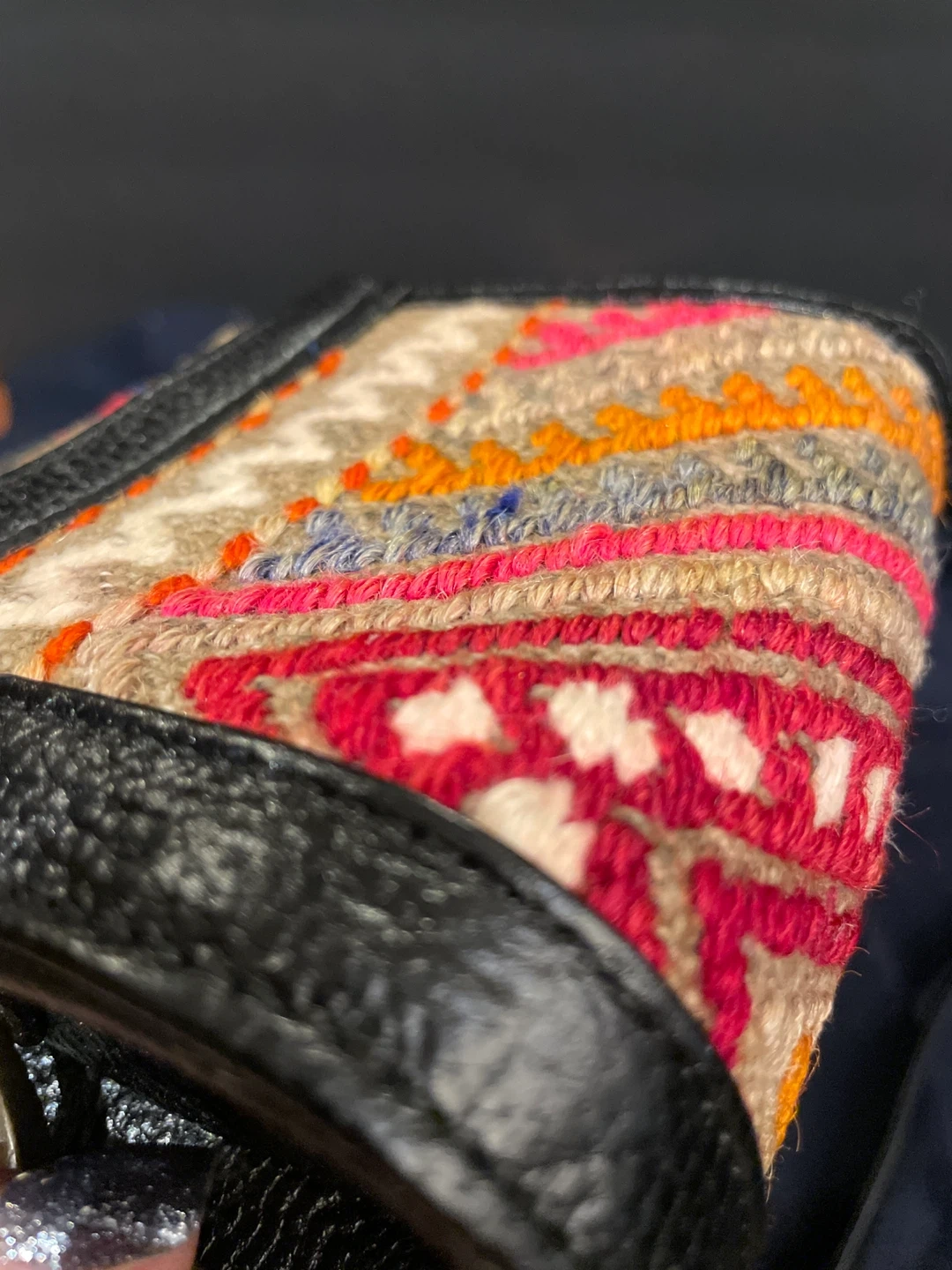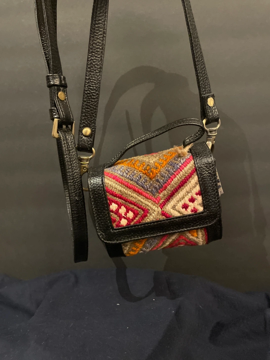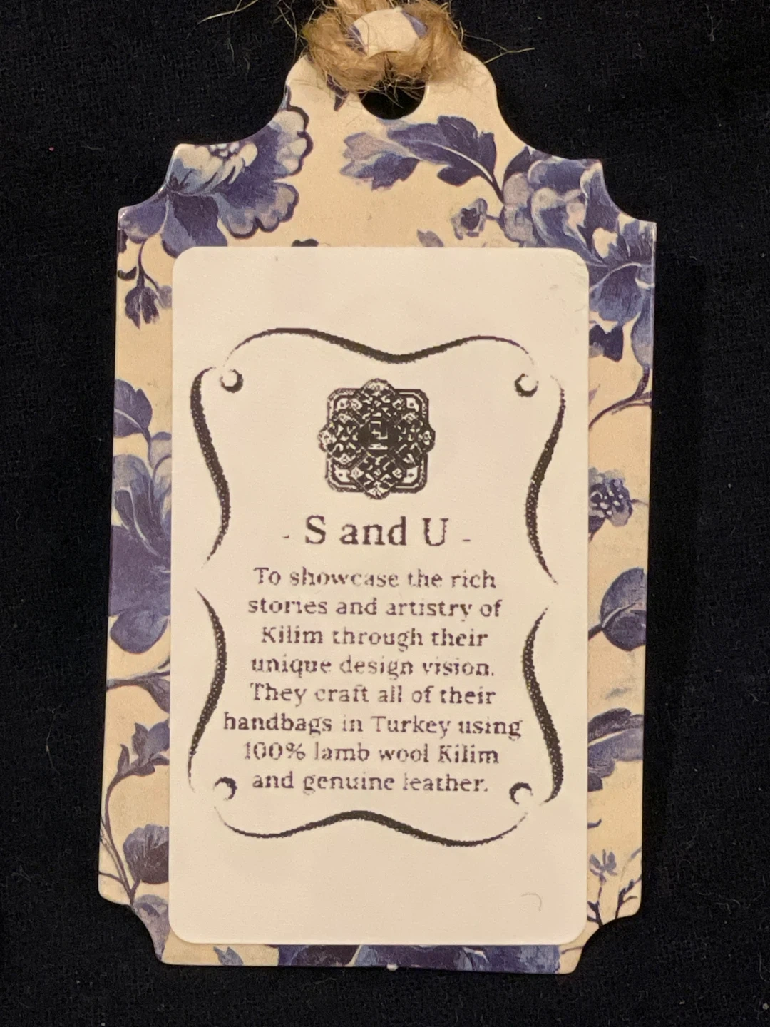 Selling a beautiful S and U handbag! This unique bag showcases the artistry of Kilim, crafted in Turkey with 100% lamb wool Kilim and genuine leather. It's a stylish and eye-catching accessory to add to your collection