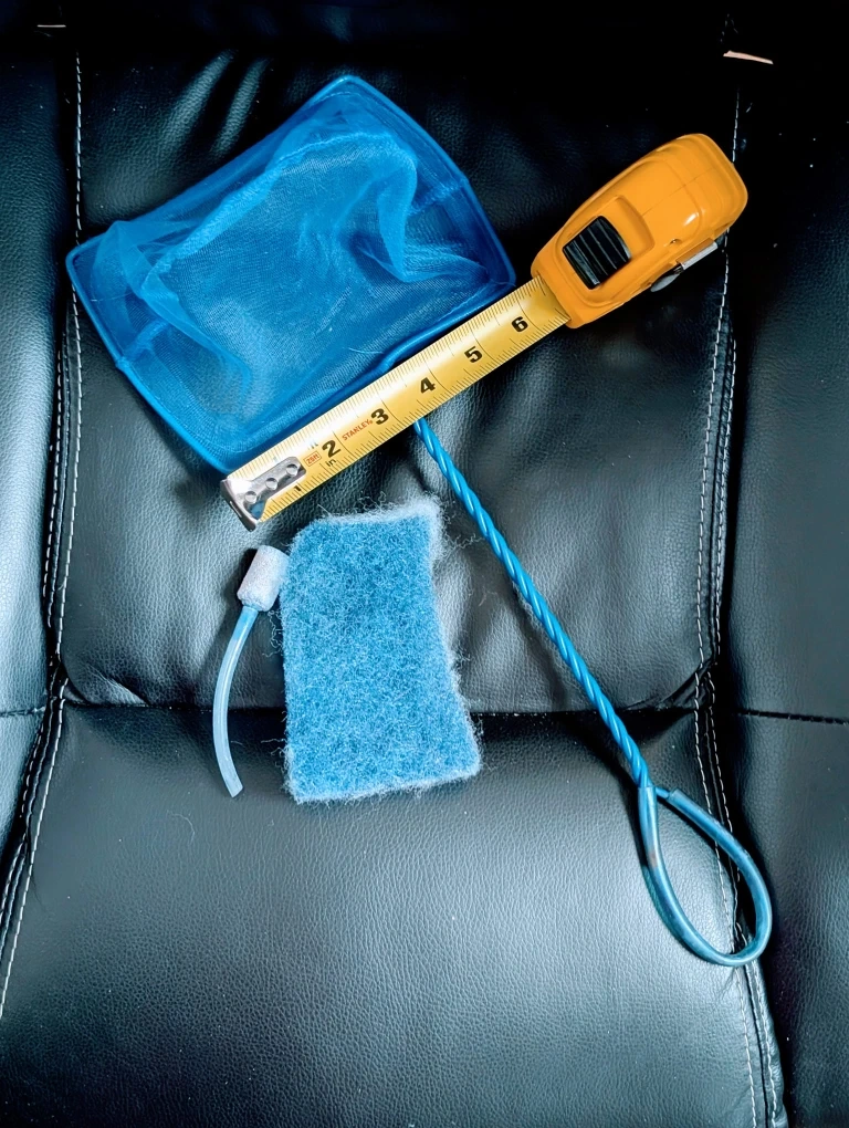 Selling a fish tank net and filter. The net is blue and the filter is a blue sponge material. Great for keeping your aquarium clean and your fish happy!