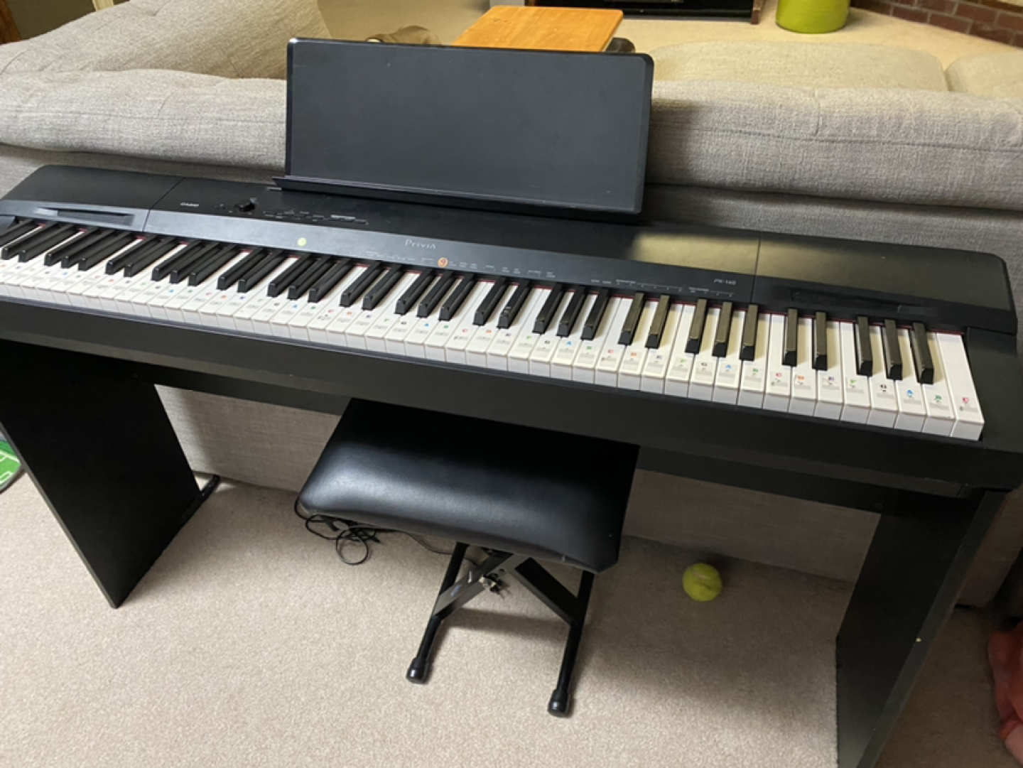 10Great condition. Sticker notes on the keys to help beginners learn notes. Headphone option. Stool included. Serious buyers only please.