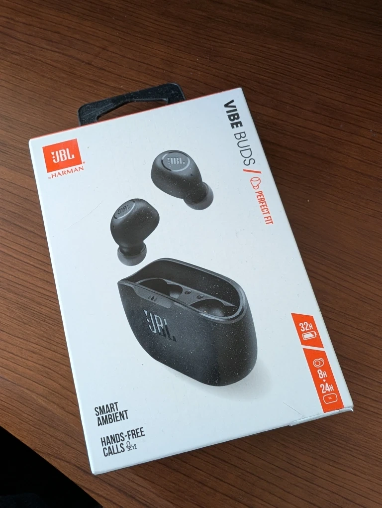Selling a brand new pair of JBL Vibe Buds! These earbuds offer a perfect fit and come in their original box. Enjoy smart ambient sound and hands-free calls. They boast a 32-hour battery life for all-day listening