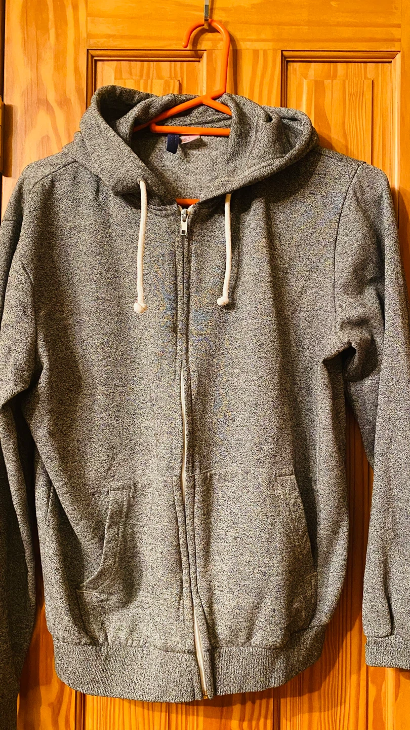 Selling a H&M Divided hoodie in size small. It's a gray color and has a zipper. It's in great condition and ready for a new owner!