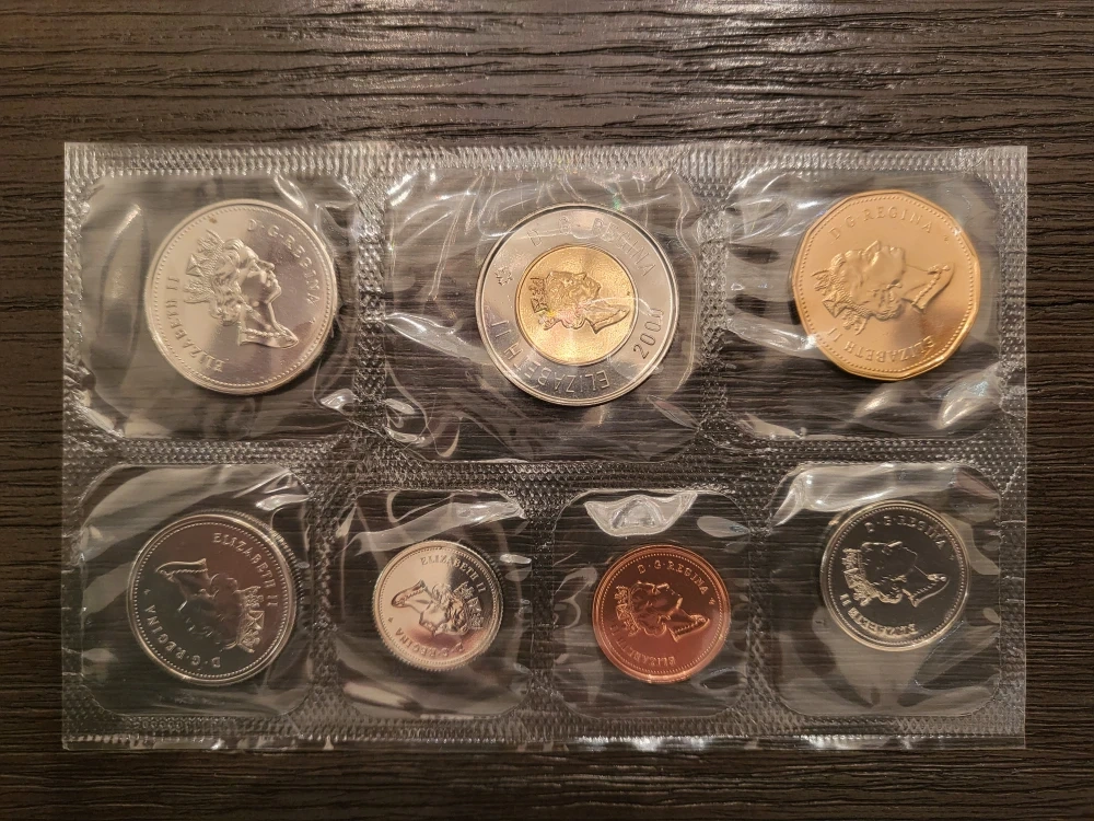 Selling a Royal Canadian Mint 2000 uncirculated coin set. It includes all the Canadian denominations from that year, still sealed in the original packaging.