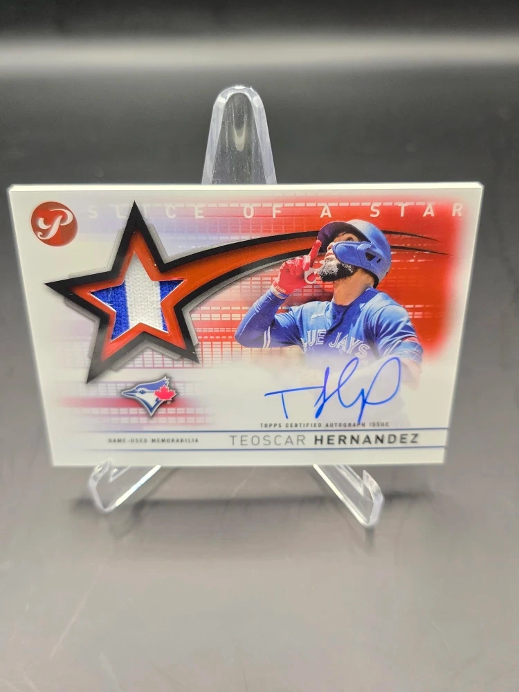Selling a Teoscar Hernandez Toronto Blue Jays Slice of a Star autographed relic card from 2022 Topps Pristine Baseball! This is card number 5/5