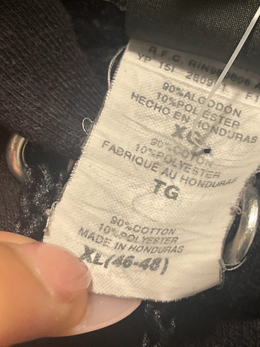 Selling a Thrasher hoodie in size XL (46-48). It's black and made of 90% cotton and 10% polyester. Only worn once, cannot wear due to religious reasons.