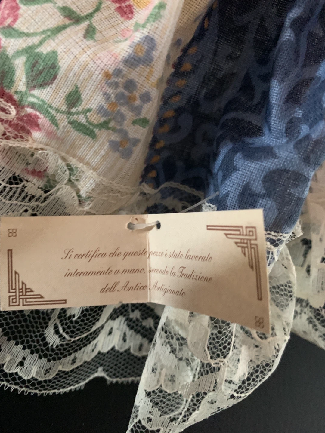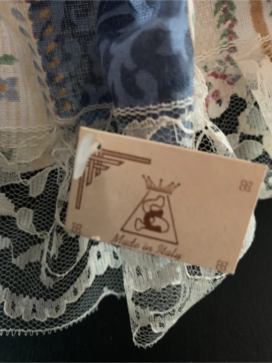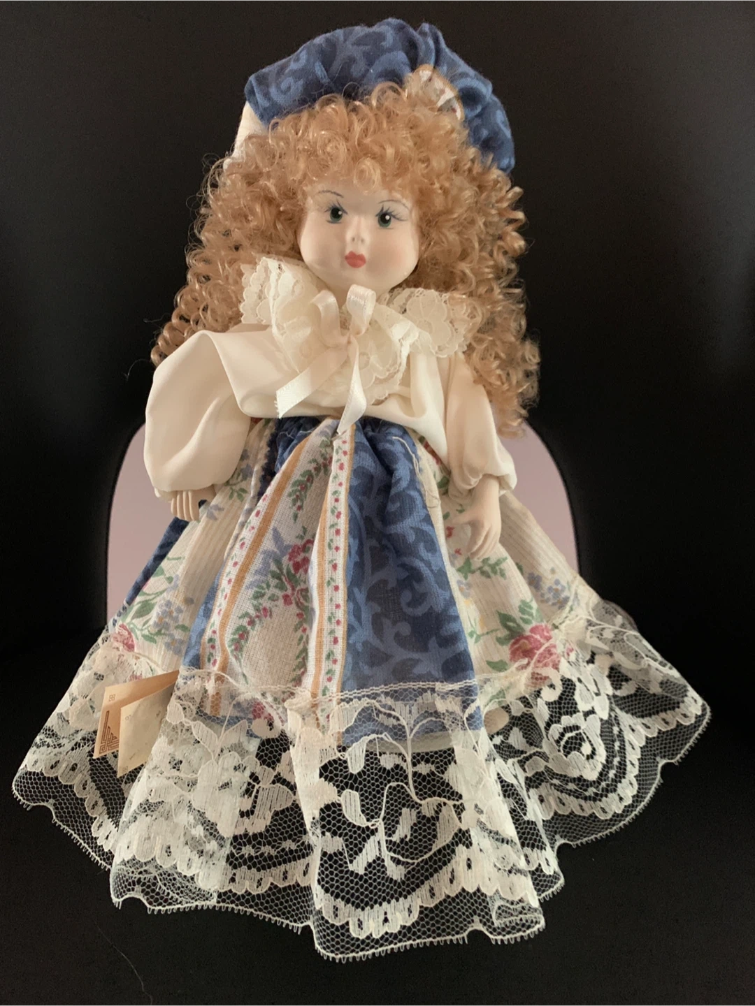 This vintage doll is Made in Italy. It has a beautiful dress with lace trim and a matching headscarf. It is in great condition and would be a lovely addition to any collection