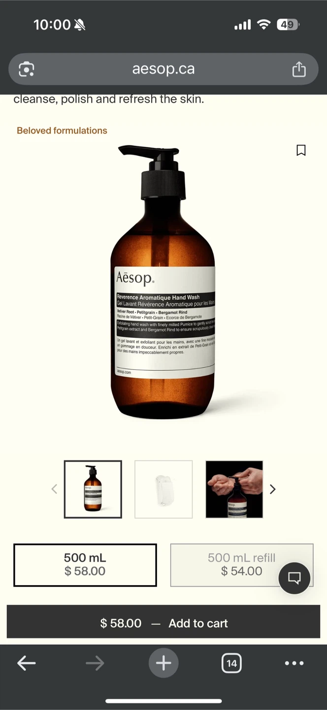 Selling an Aesop Reverece Aromatique Hand Wash and Balm set! The hand wash is 500 mL and the balm is 75 mL. Both items are known for their aromatic blend of petitgrain, bergamot rind, and vetiver root. This set is perfect for cleansing, polishing, and refreshing your skin!